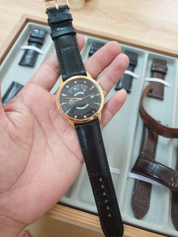 Dây cá sấu đen cho Đồng Hồ Orient Sun And Moon Gen 3 Rose RA-AK0007S10B size 22-20