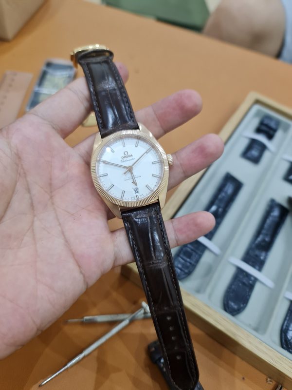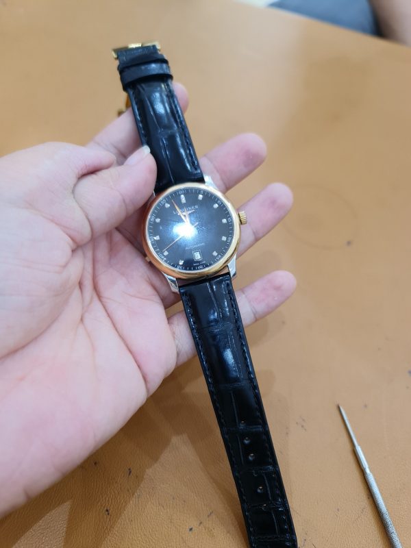 Dây Cá Sấu Đen Khâu Máy Cho Đồng Hồ Longines Master Collection L2.628.5.59.7 L26285597