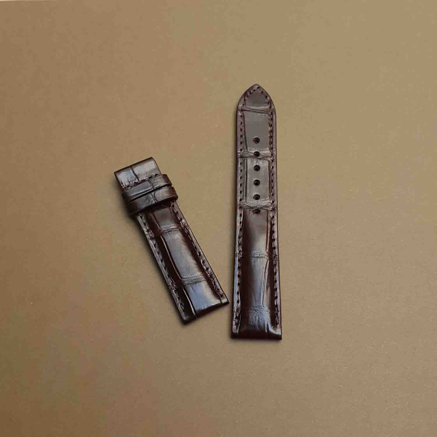 Dây đồng hồ màu nâu đất da bụng cá sấu size 18 16, 20 18, 20 16, 22 20, 22 18,…