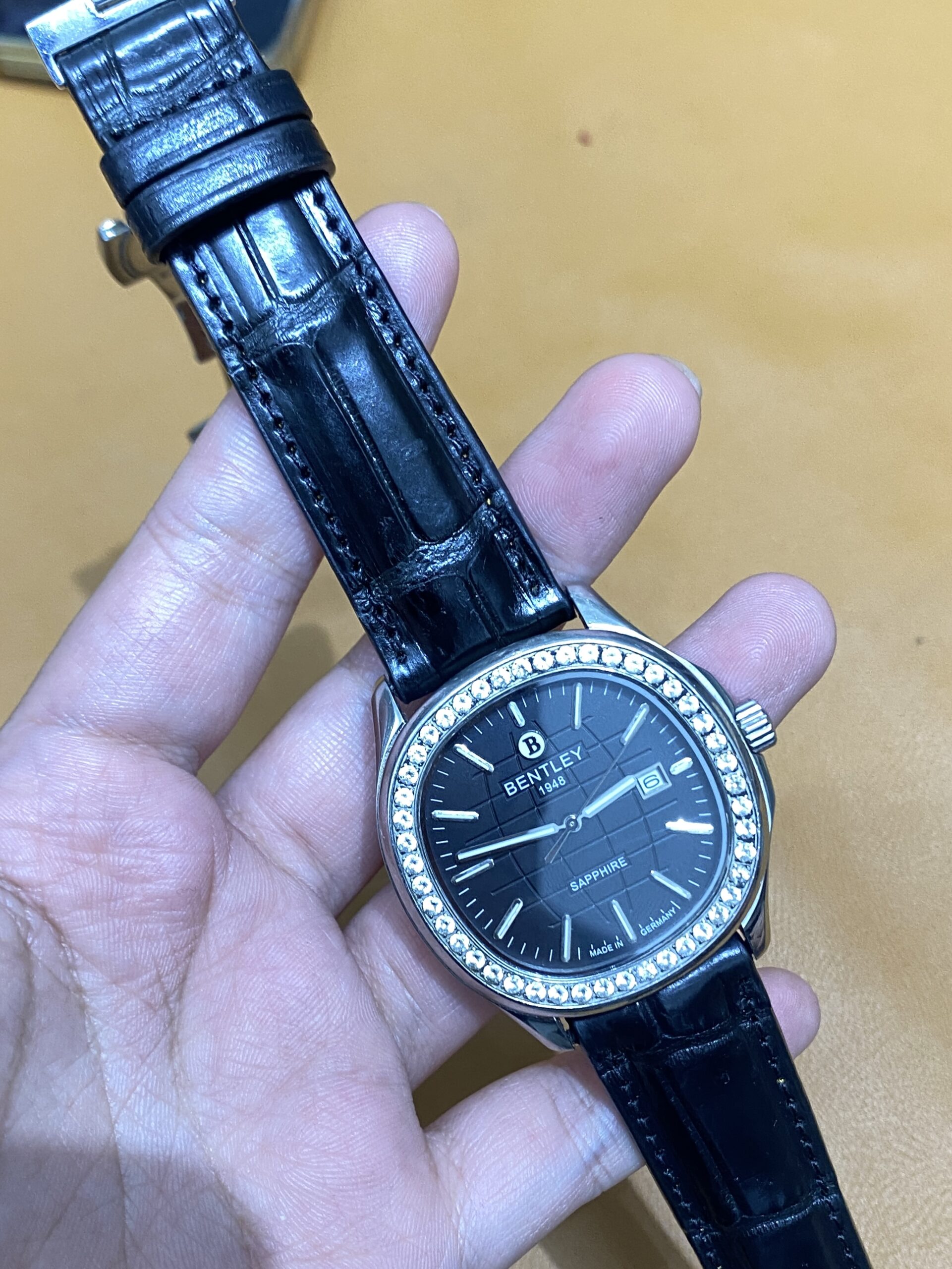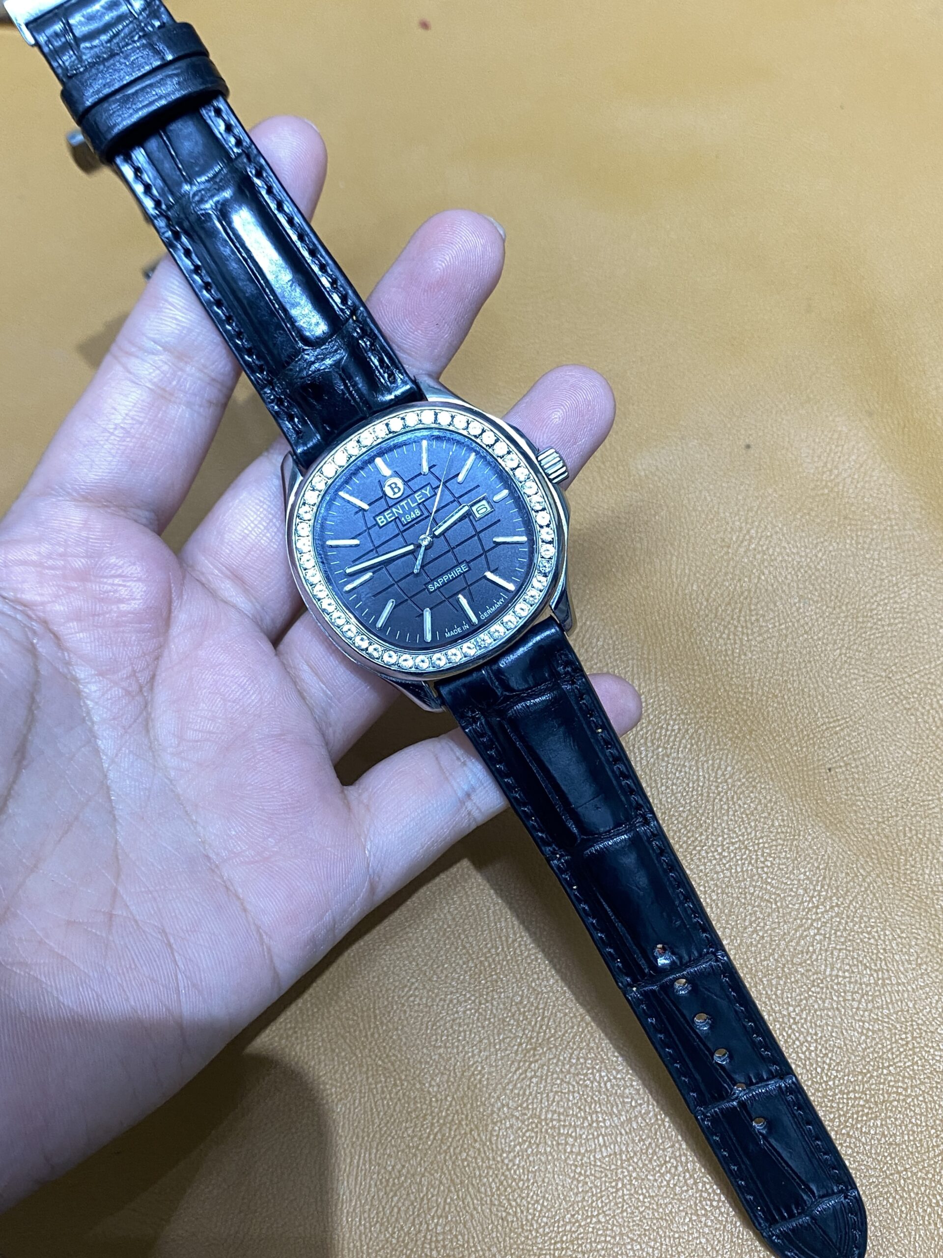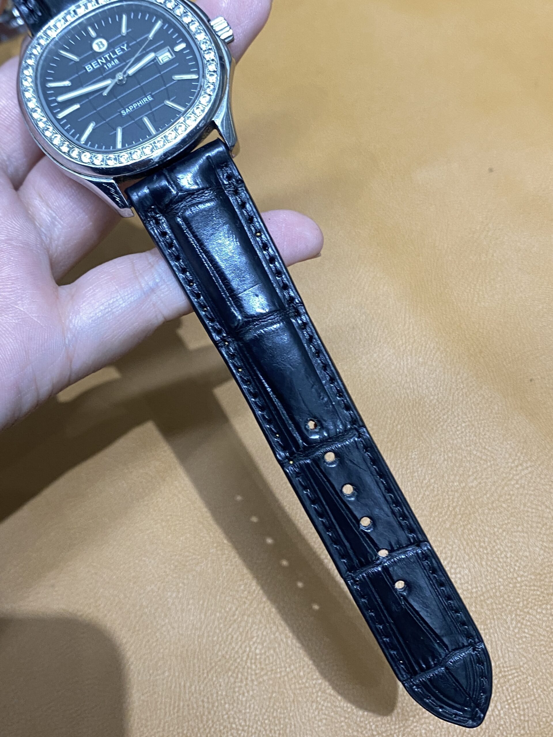Dây cá sấu đen cho Đồng Hồ Bentley Nautilus BL1869-101MWBB size 20-18