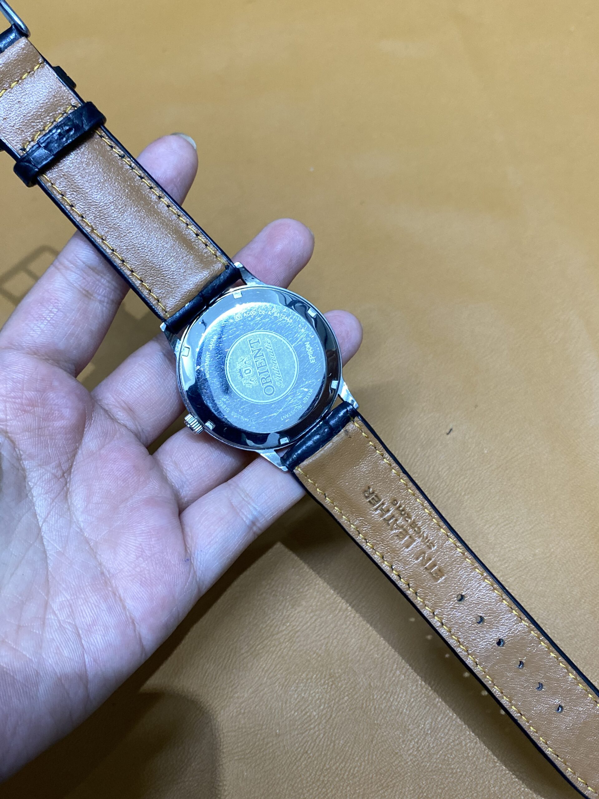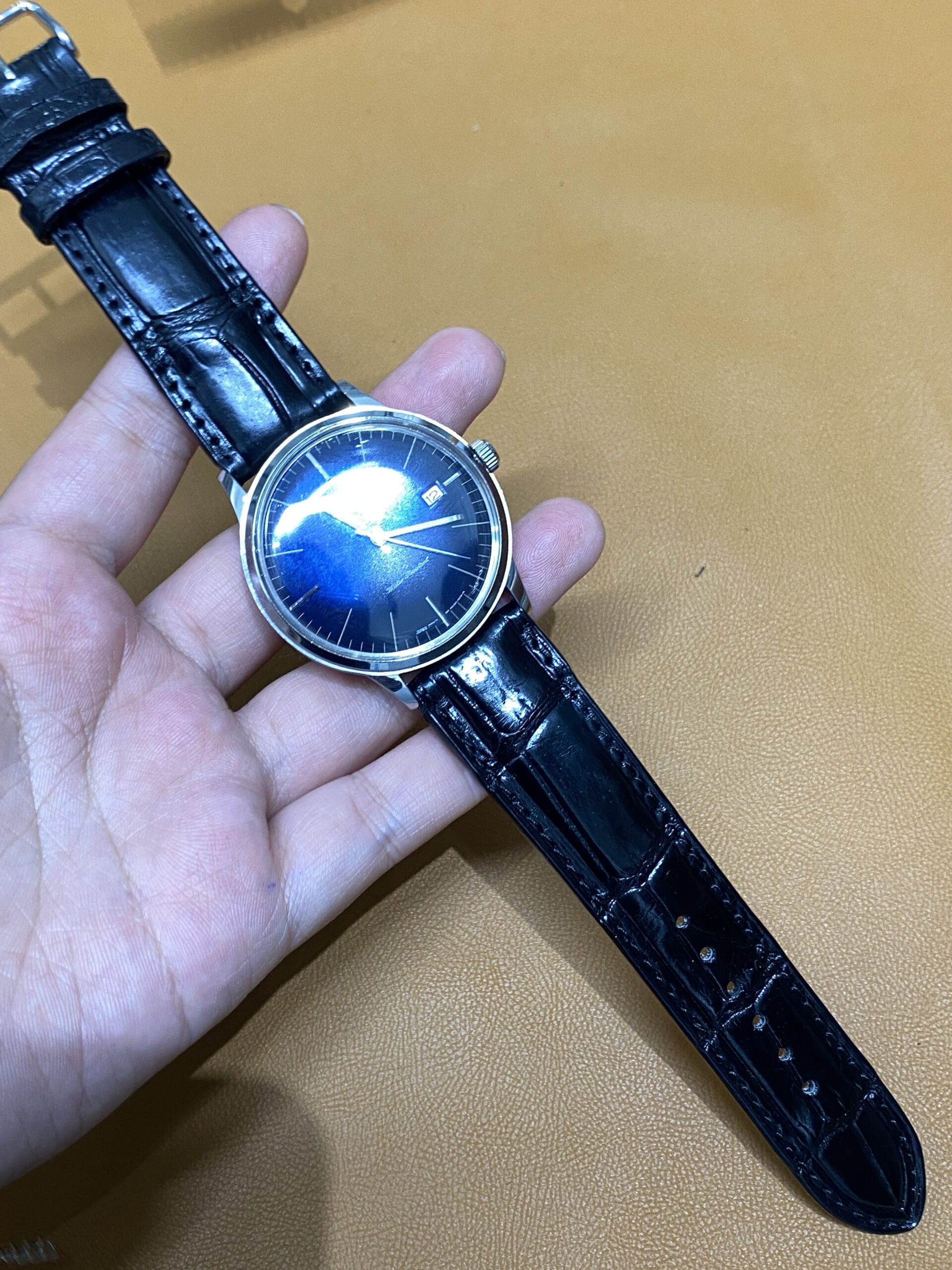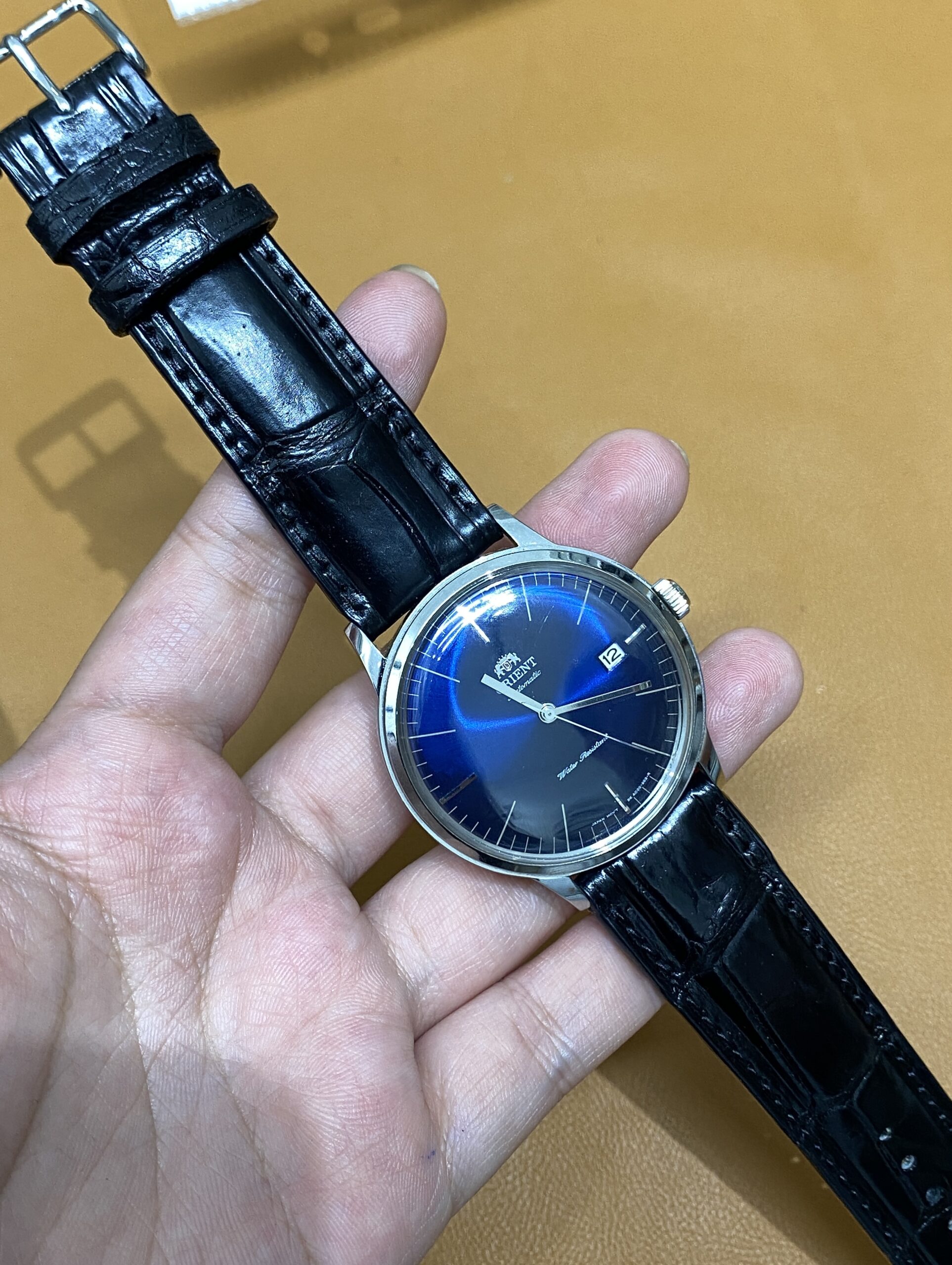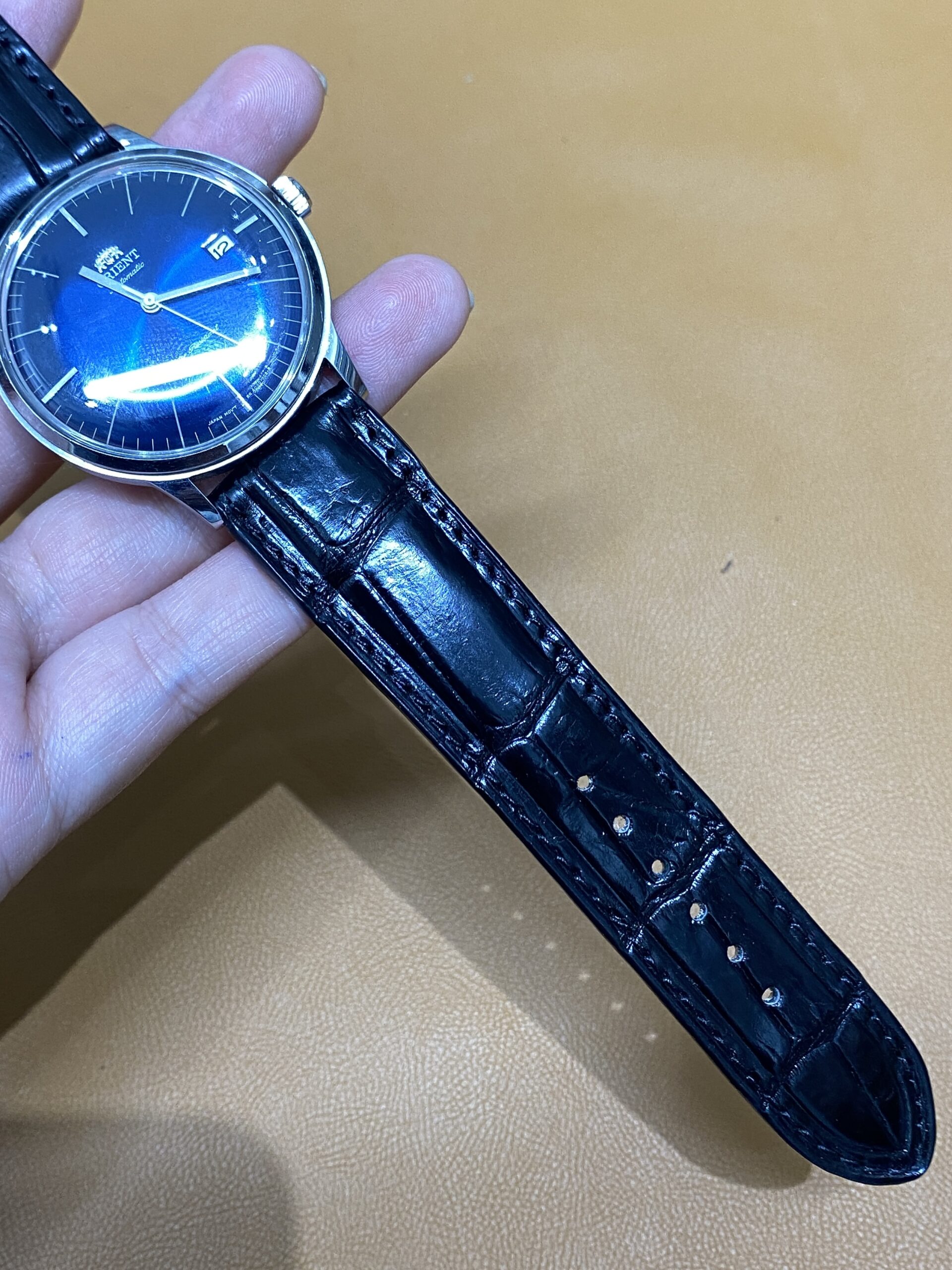 Dây cá sấu đen cho Đồng hồ Orient Bambino Version 2 size 22-20