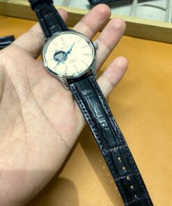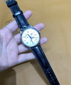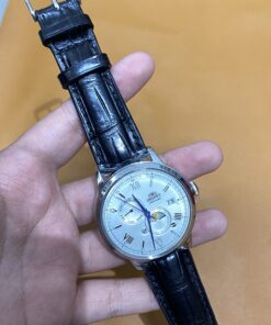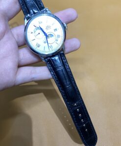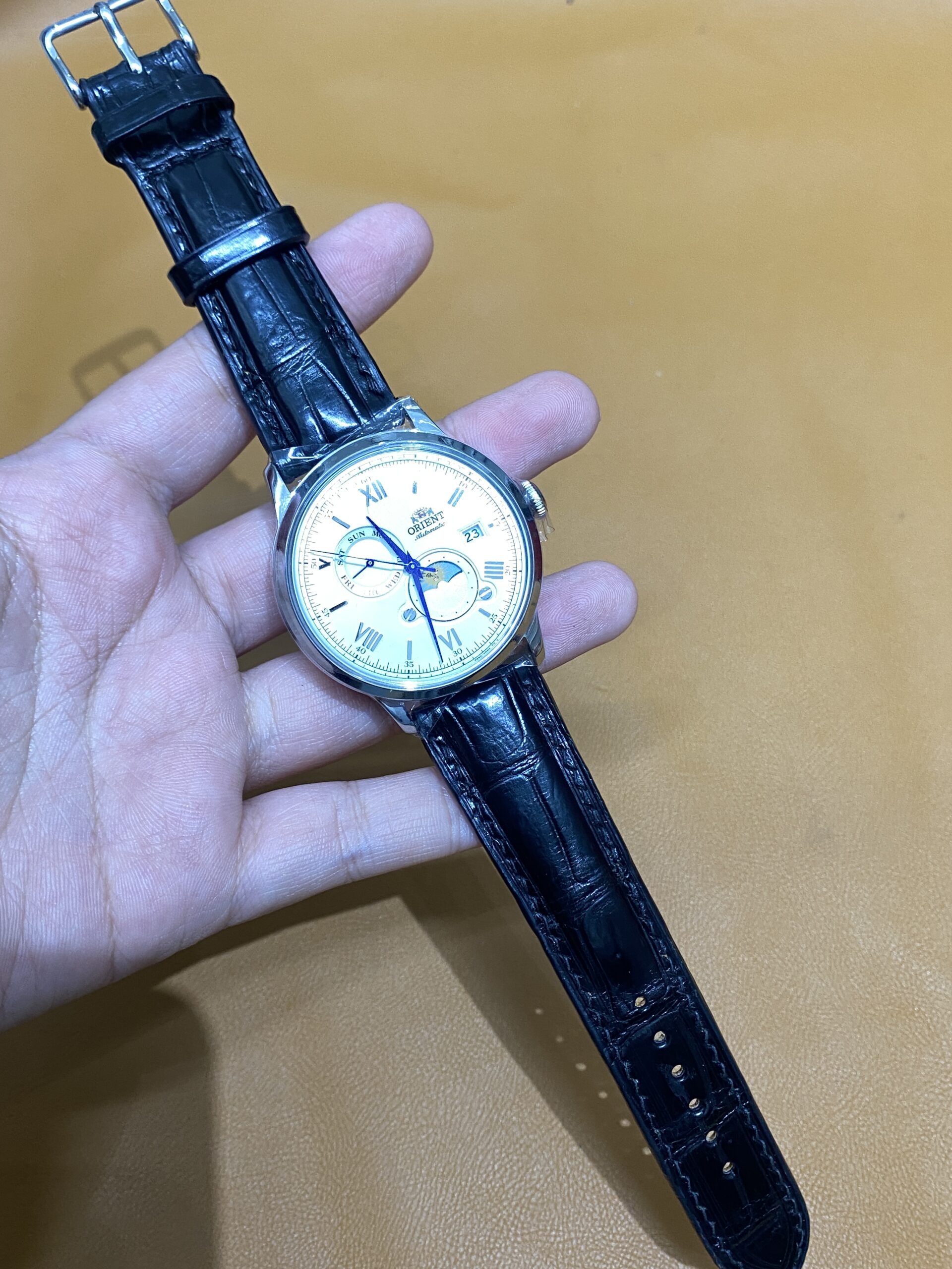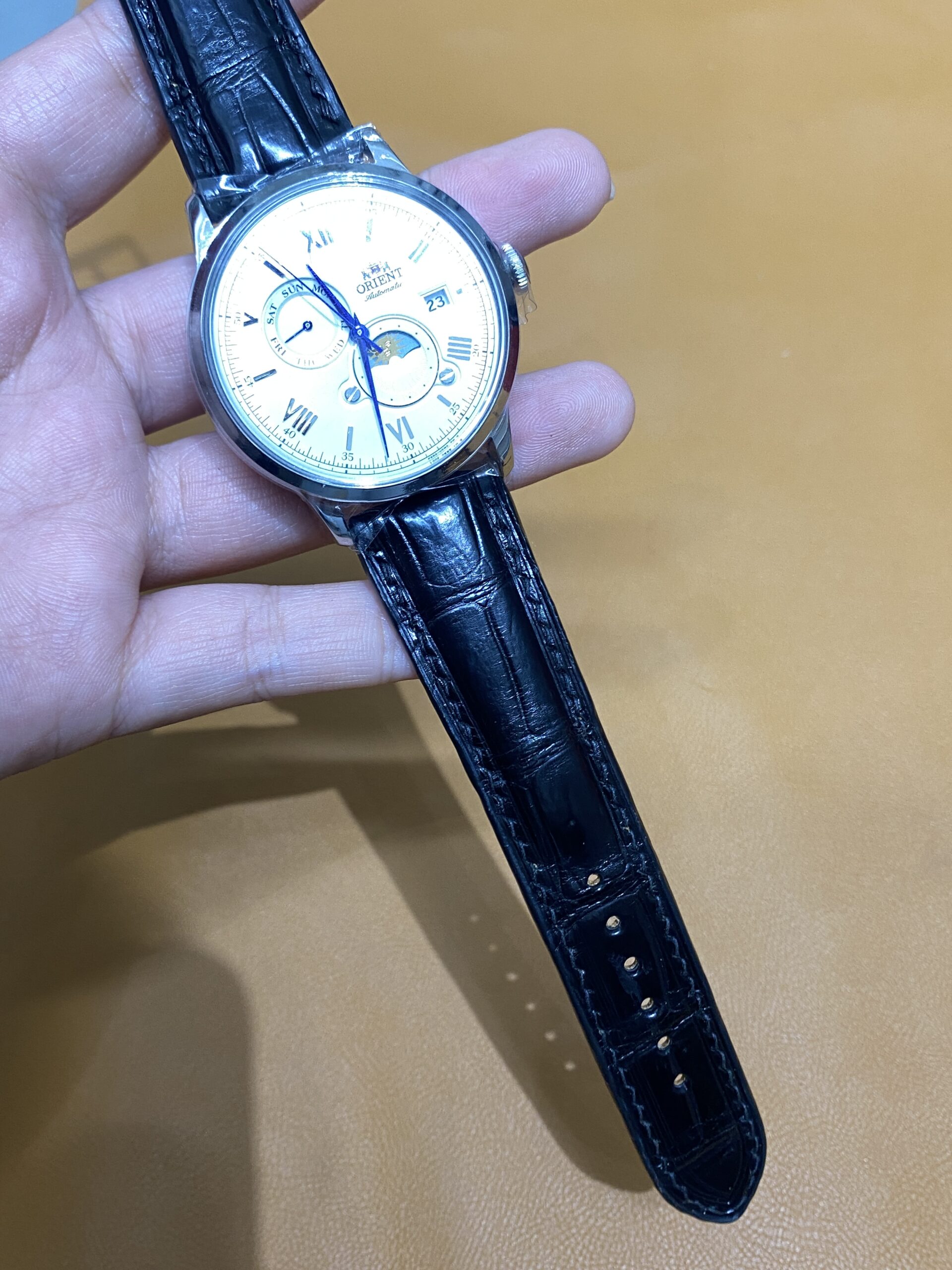 Dây cá sấu đen cho đồng hồ Orient Classic Sun and Moon RA-AK0802S30B size 20-18