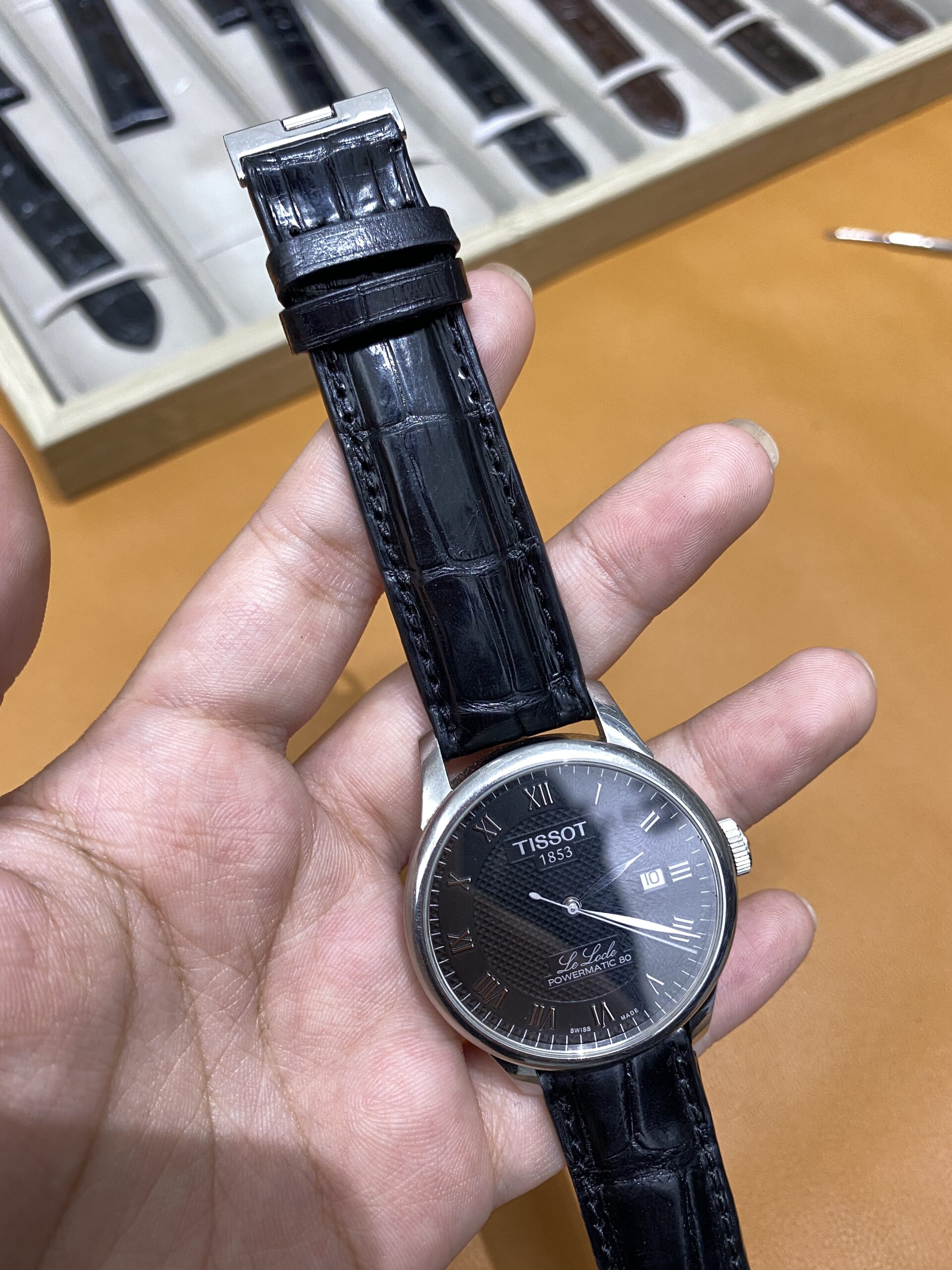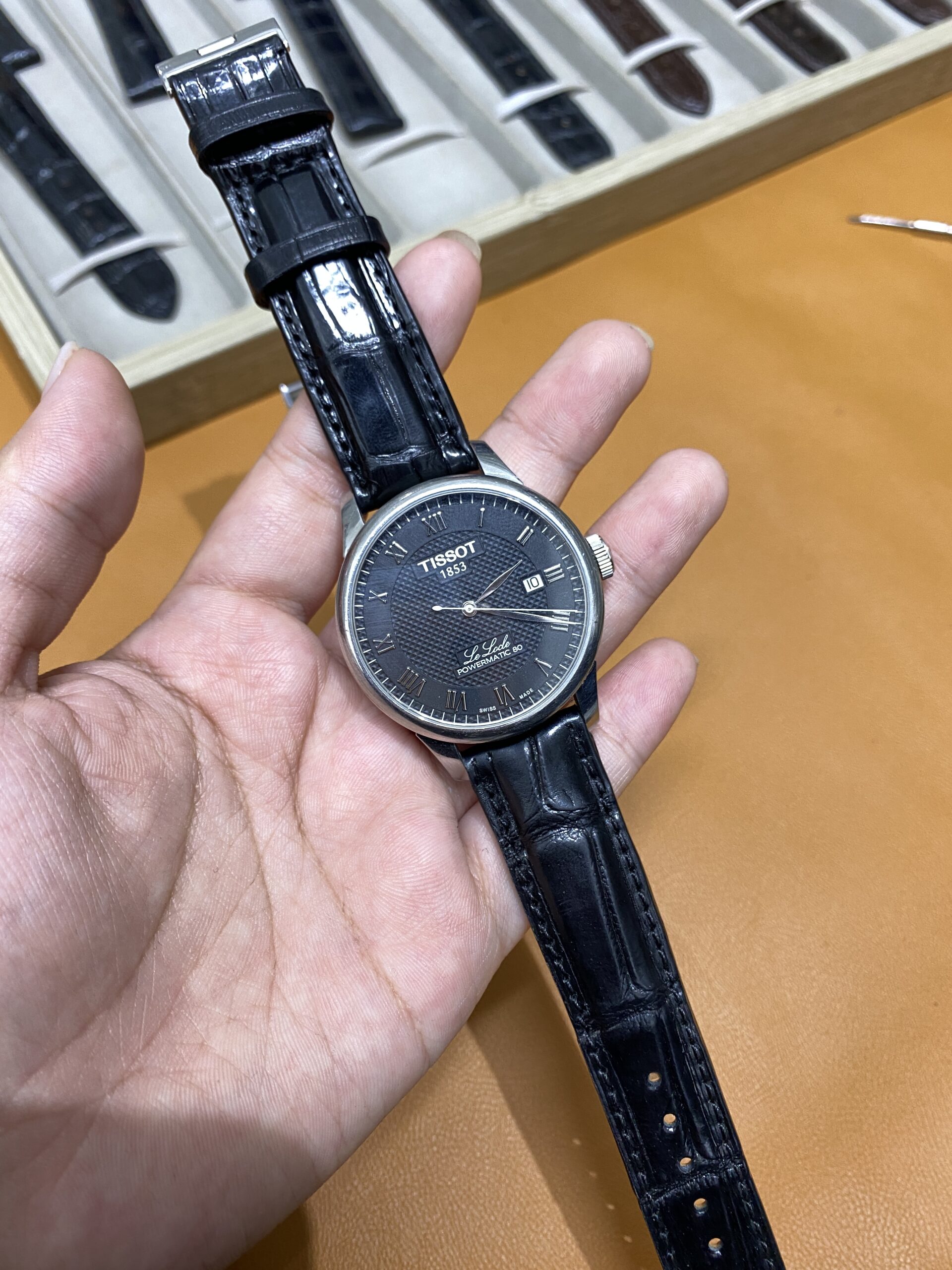 Dây cá sấu đen cho Đồng hồ Tissot Le Locle Powermatic 80 T006.407.16.053.00 size 19-18