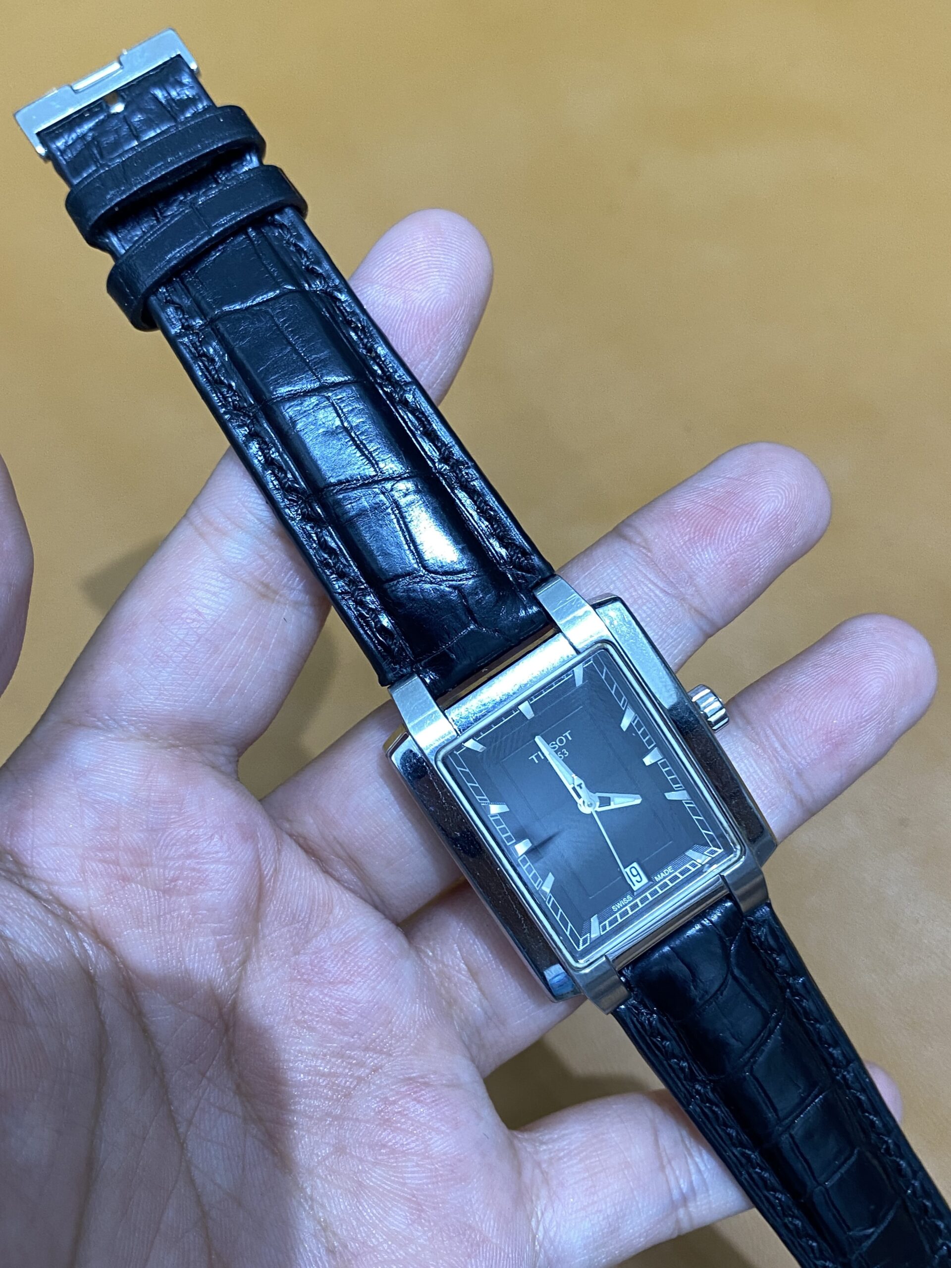 Dây cá sấu đen cho Đồng hồ Tissot T-Trend T061.510.16.051.00 TXL size 20-18
