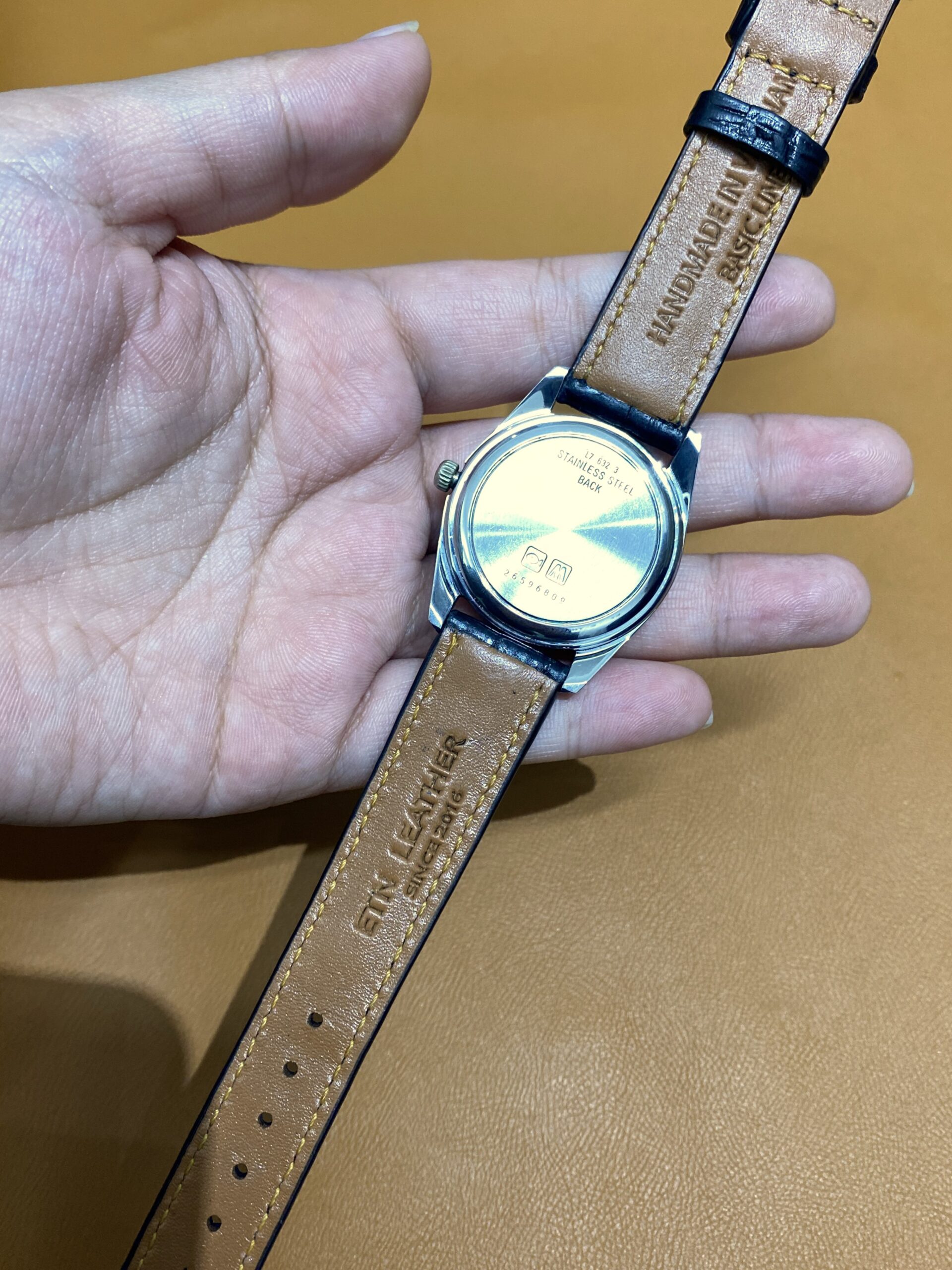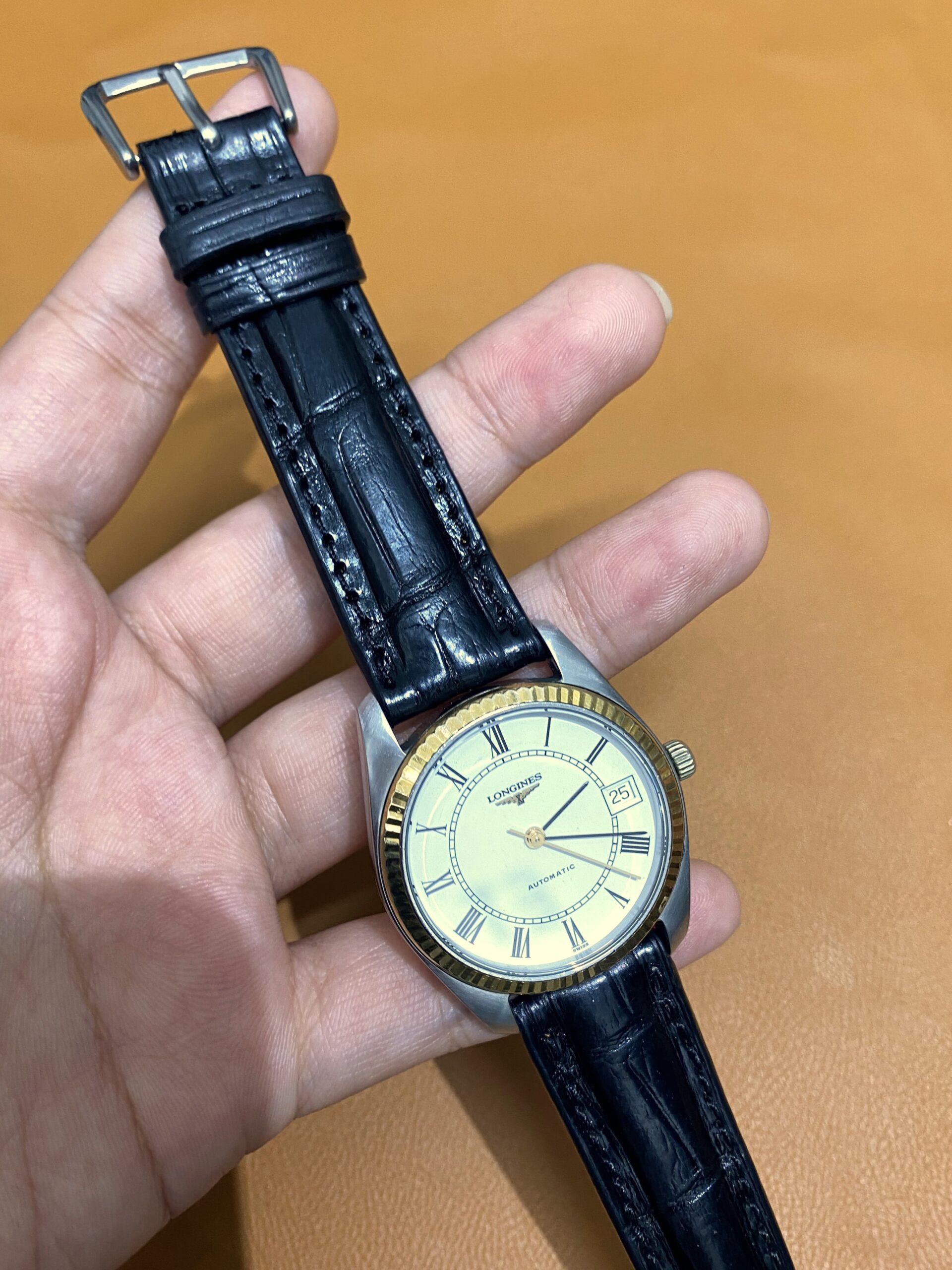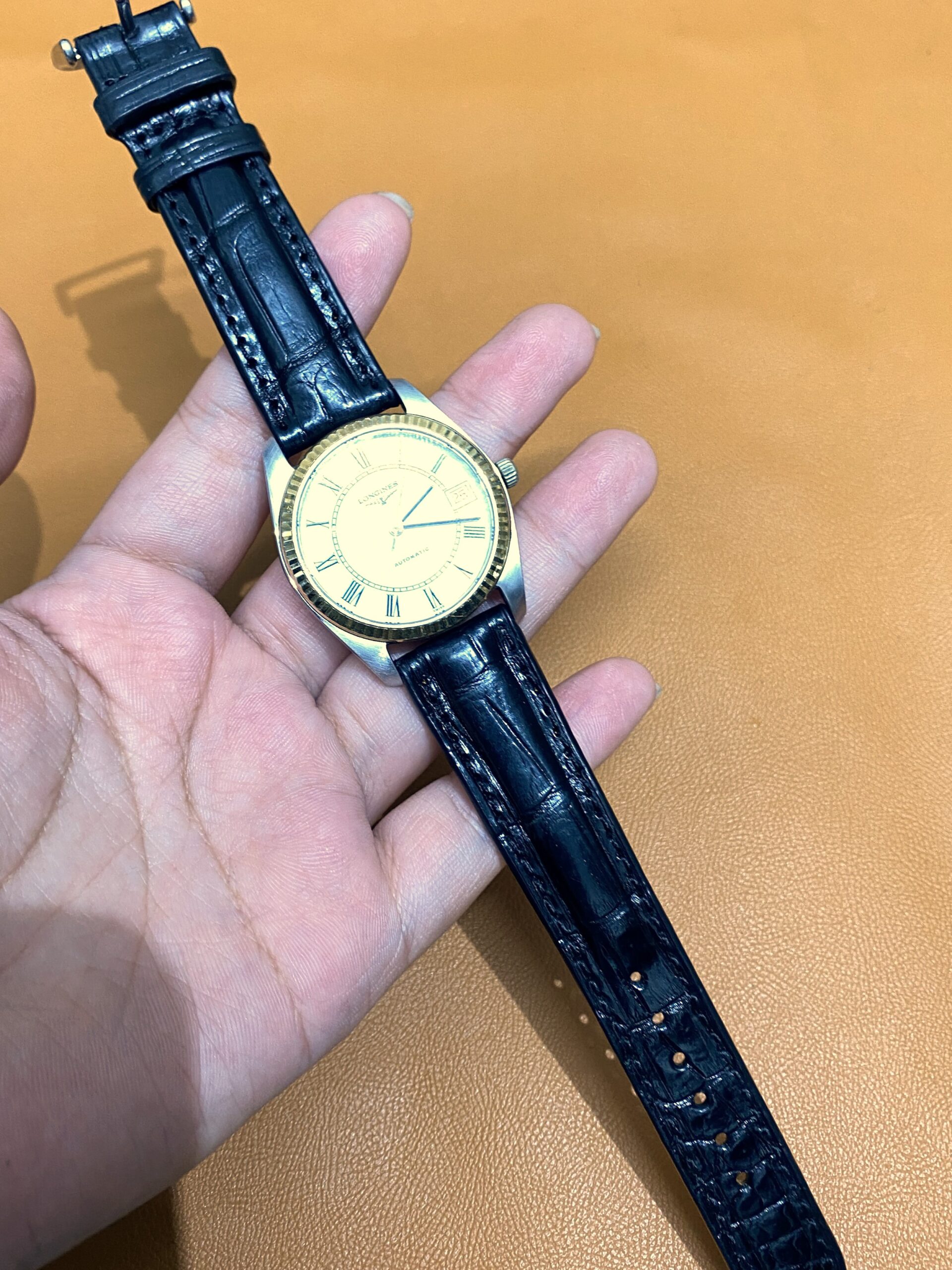 Dây cá sấu đen cho Đồng hồ Vintage Longines Automatic Wristwatch-L7 632 3 size 18-16