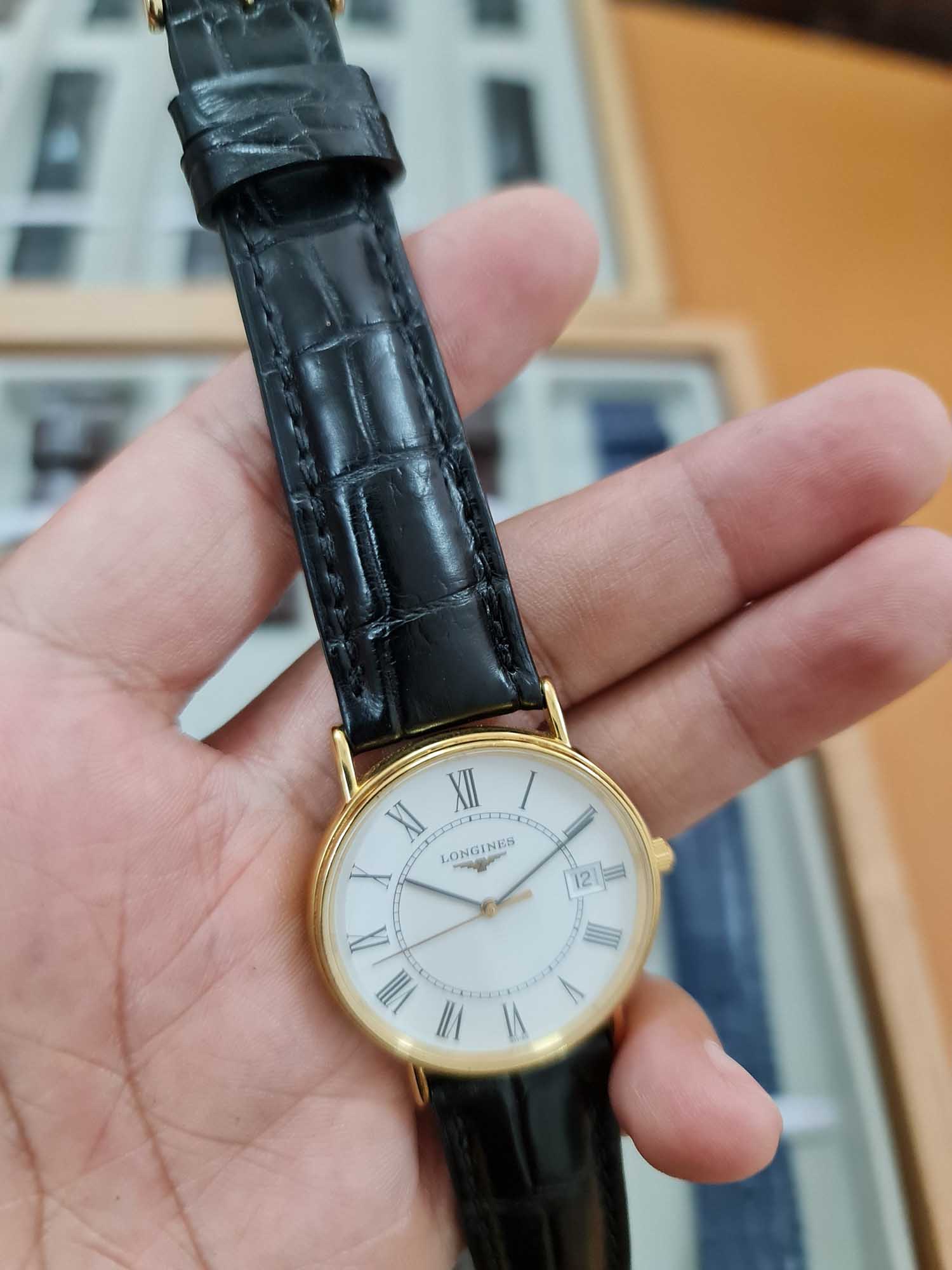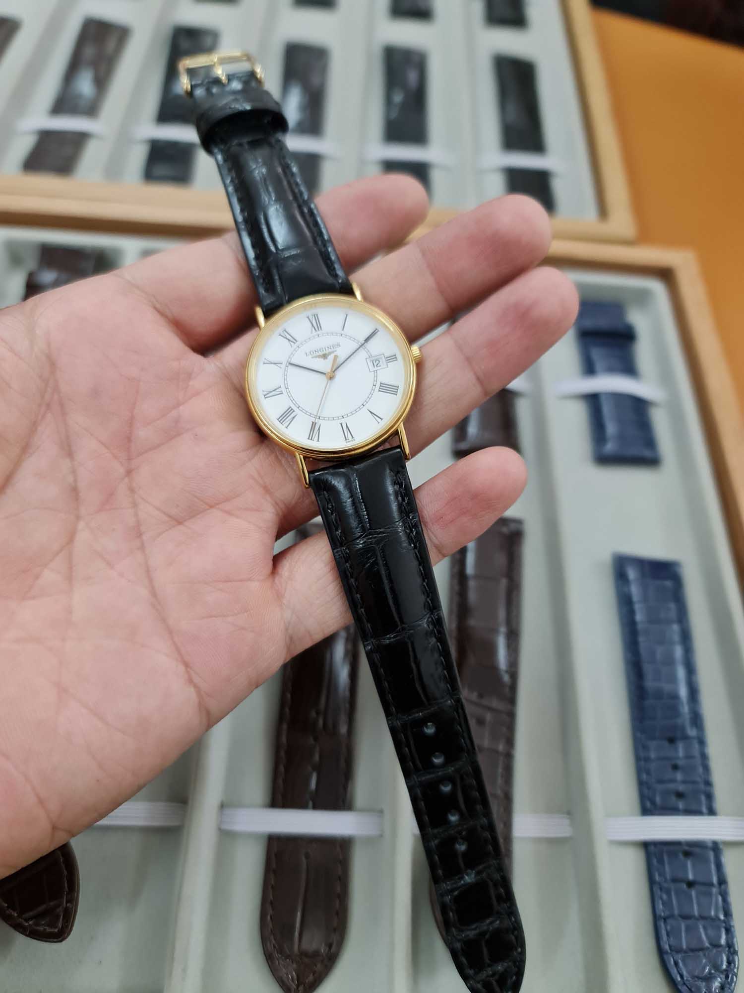 Dây đồng hồ da cá sấu màu đen cho Longines Elegant L4.787.8.11.0 size 20 – 18 của anh khách.
