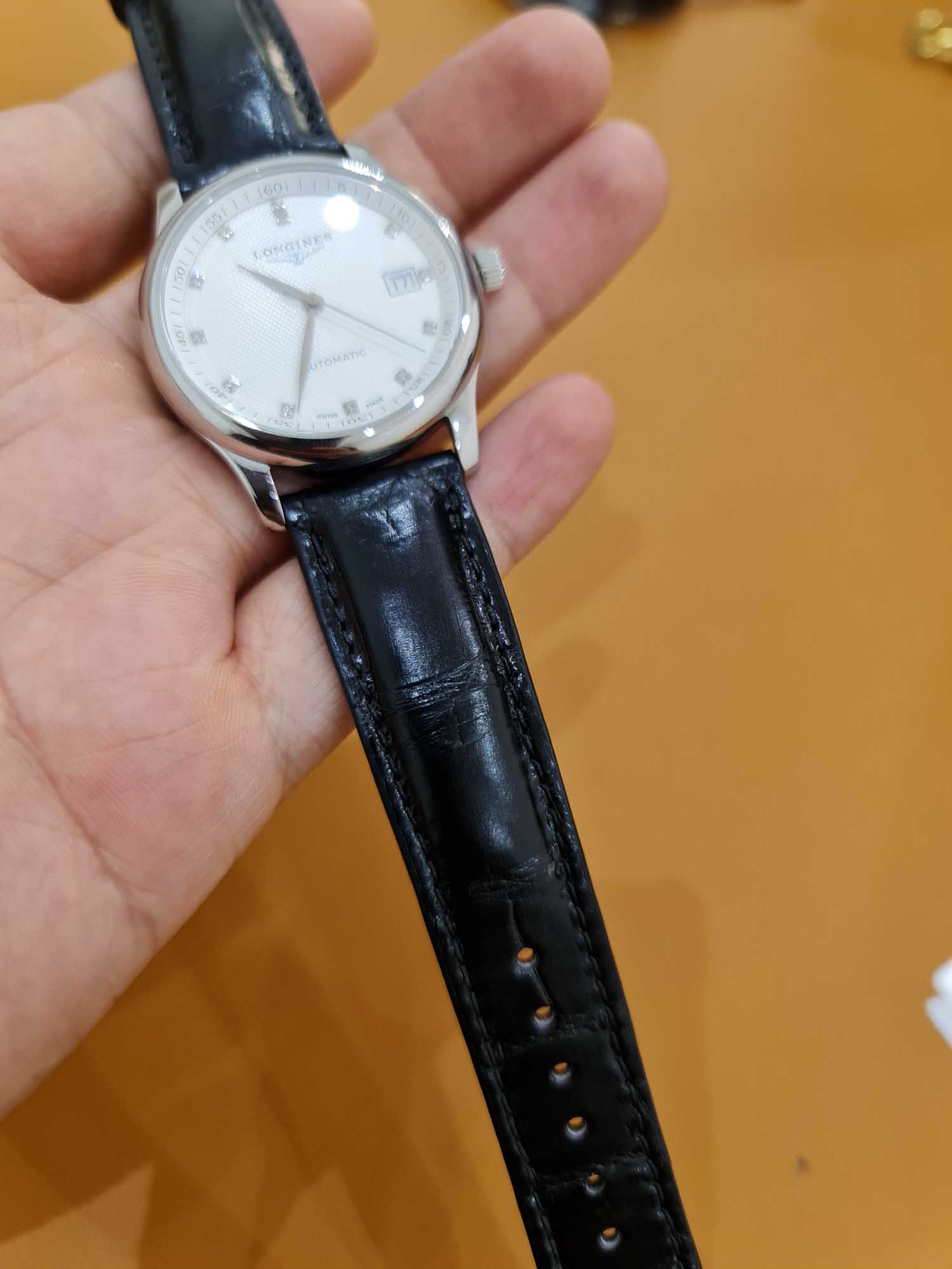 Dây đồng hồ da cá sấu màu đen cho Longines Master Collection size 20 – 18 của anh khách.