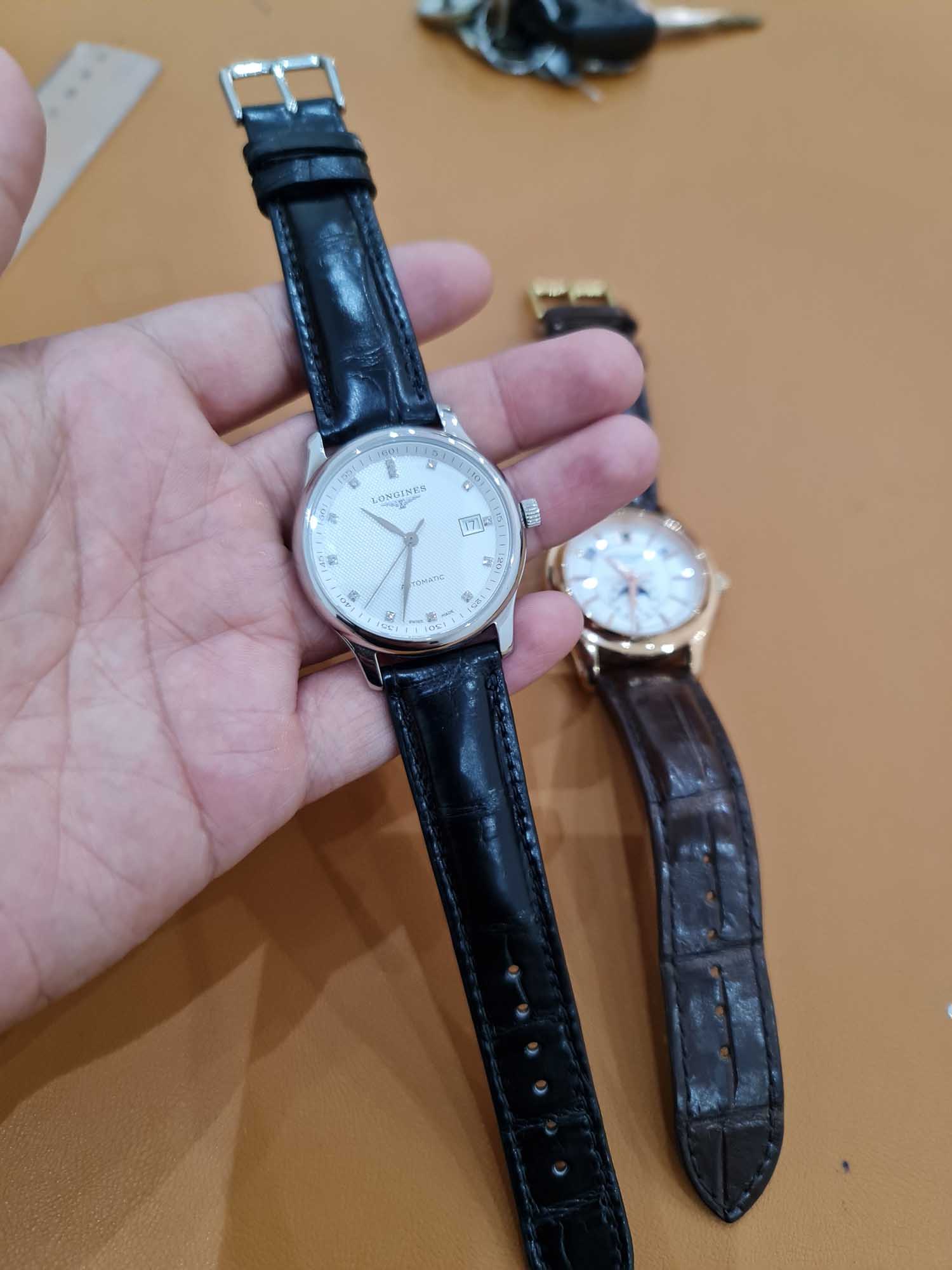 Dây cá sấu khâu máy cho đồng hồ Longines Master Collection
