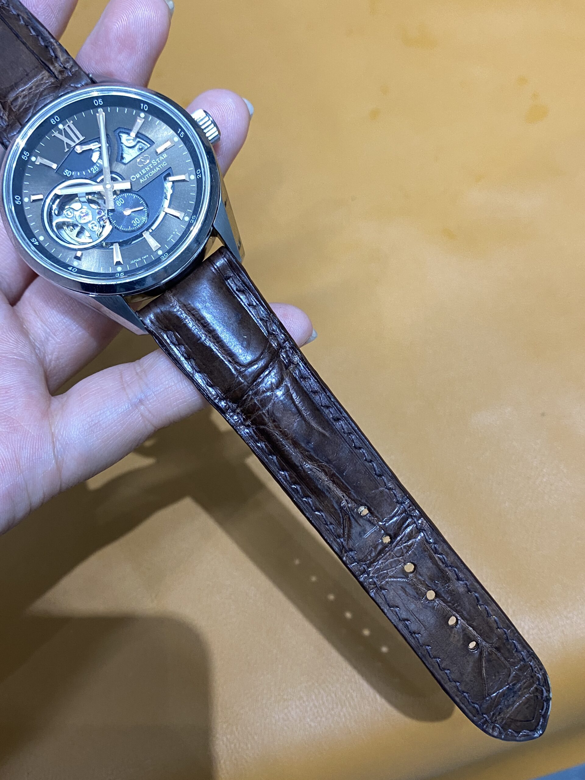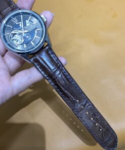 Dây cá sấu nâu cho đồng hồ Jacques Lemans Nostalgie N-206C size 22-20