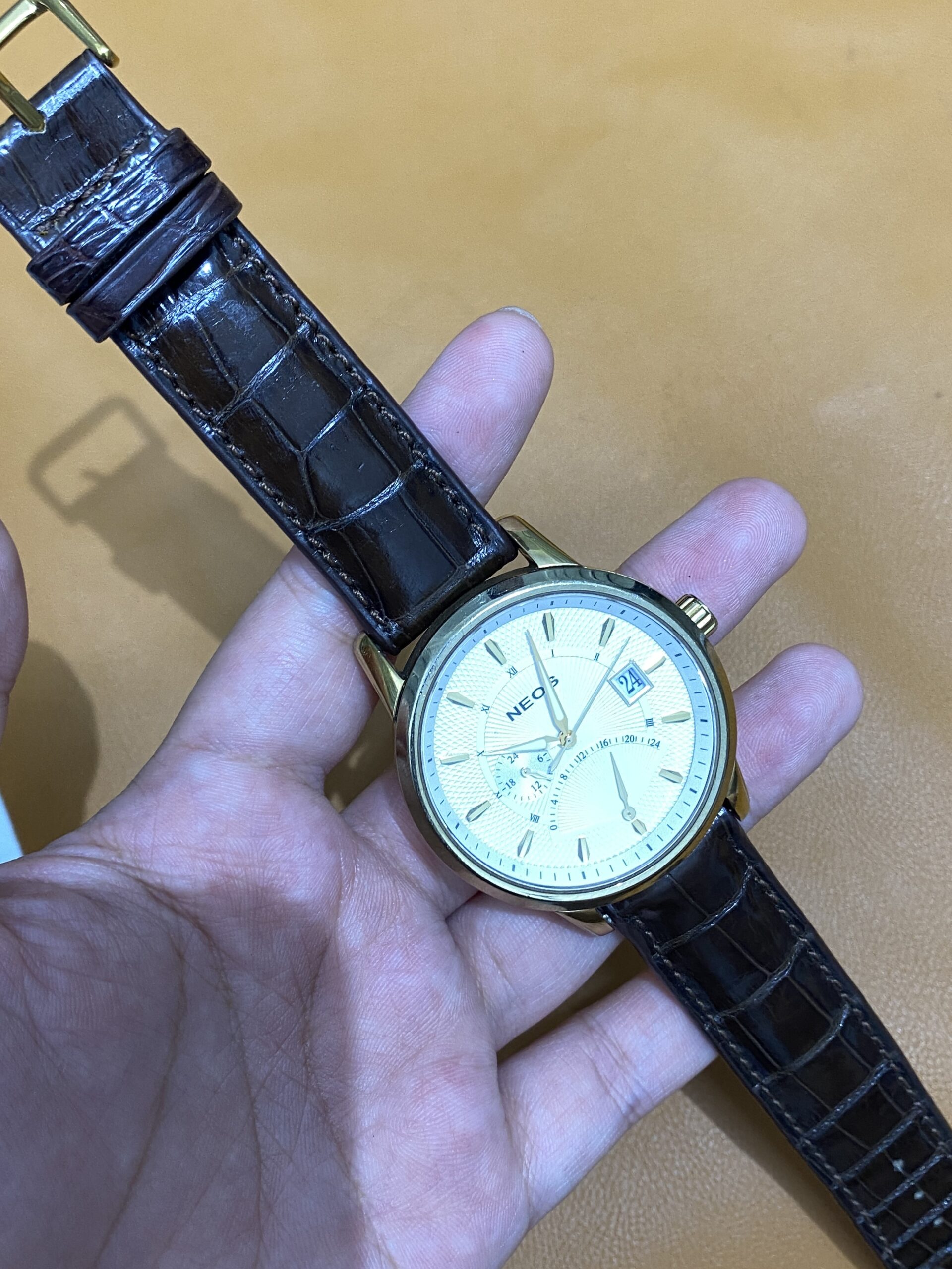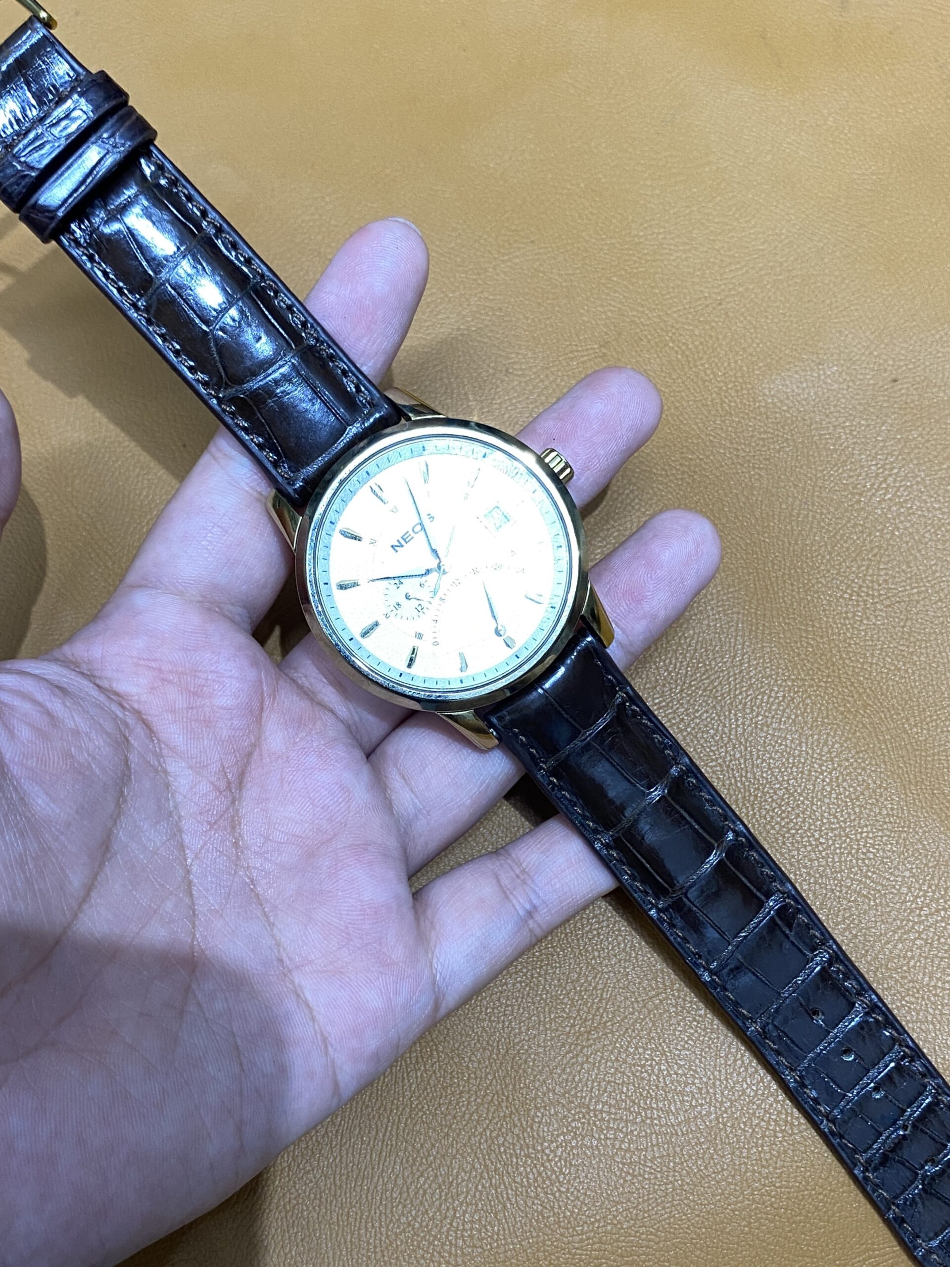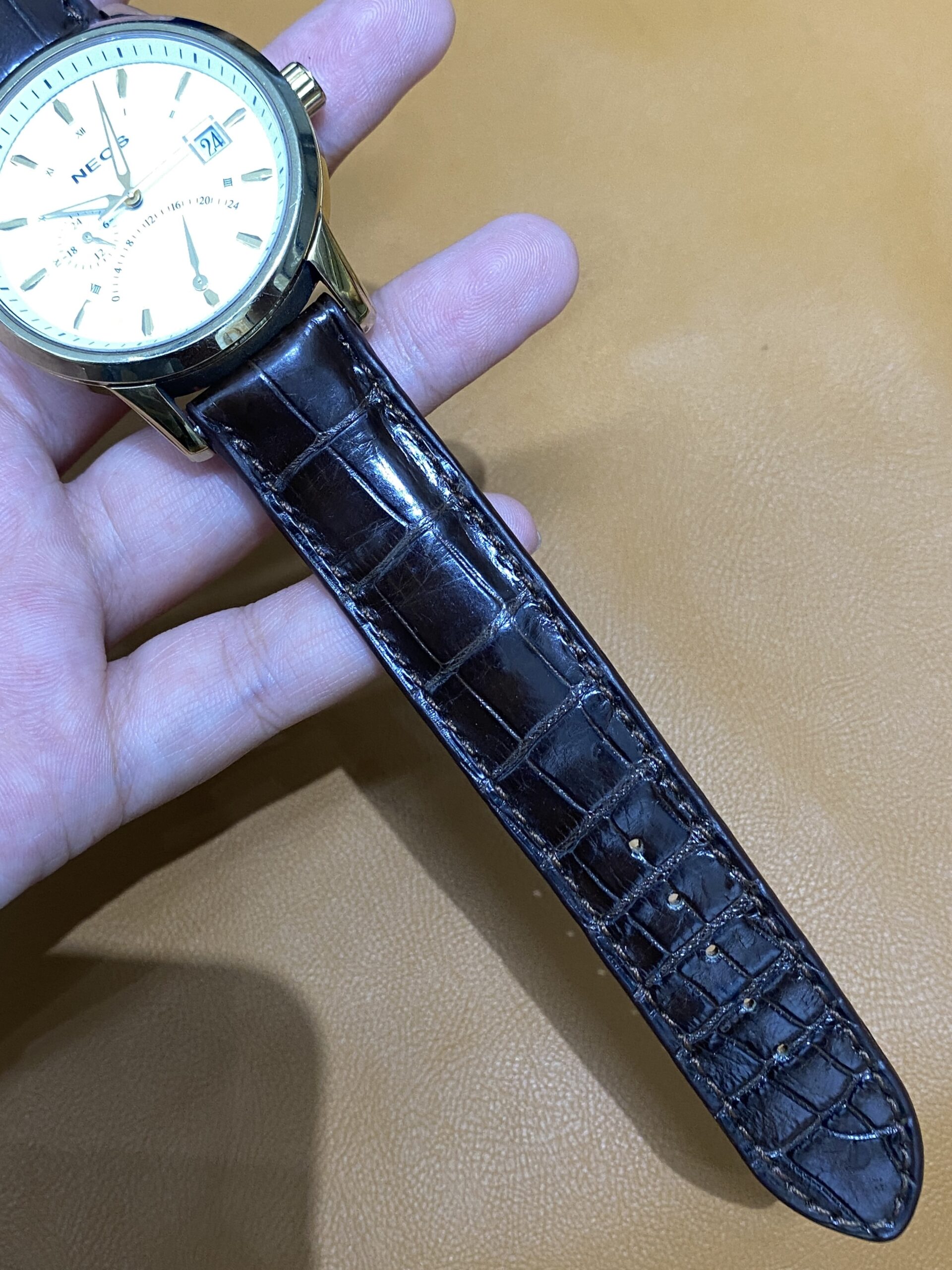 Dây cá sấu nâu cho Đồng hồ NEOS N30857M size 20-18