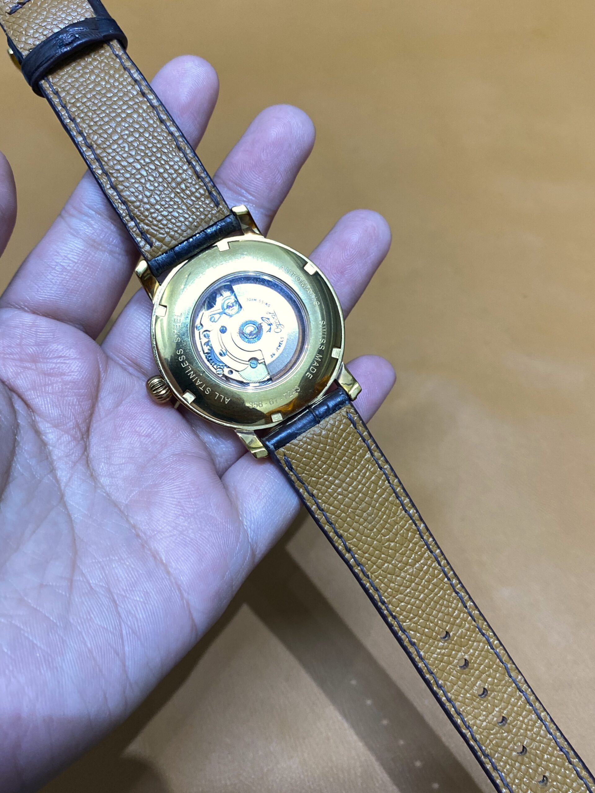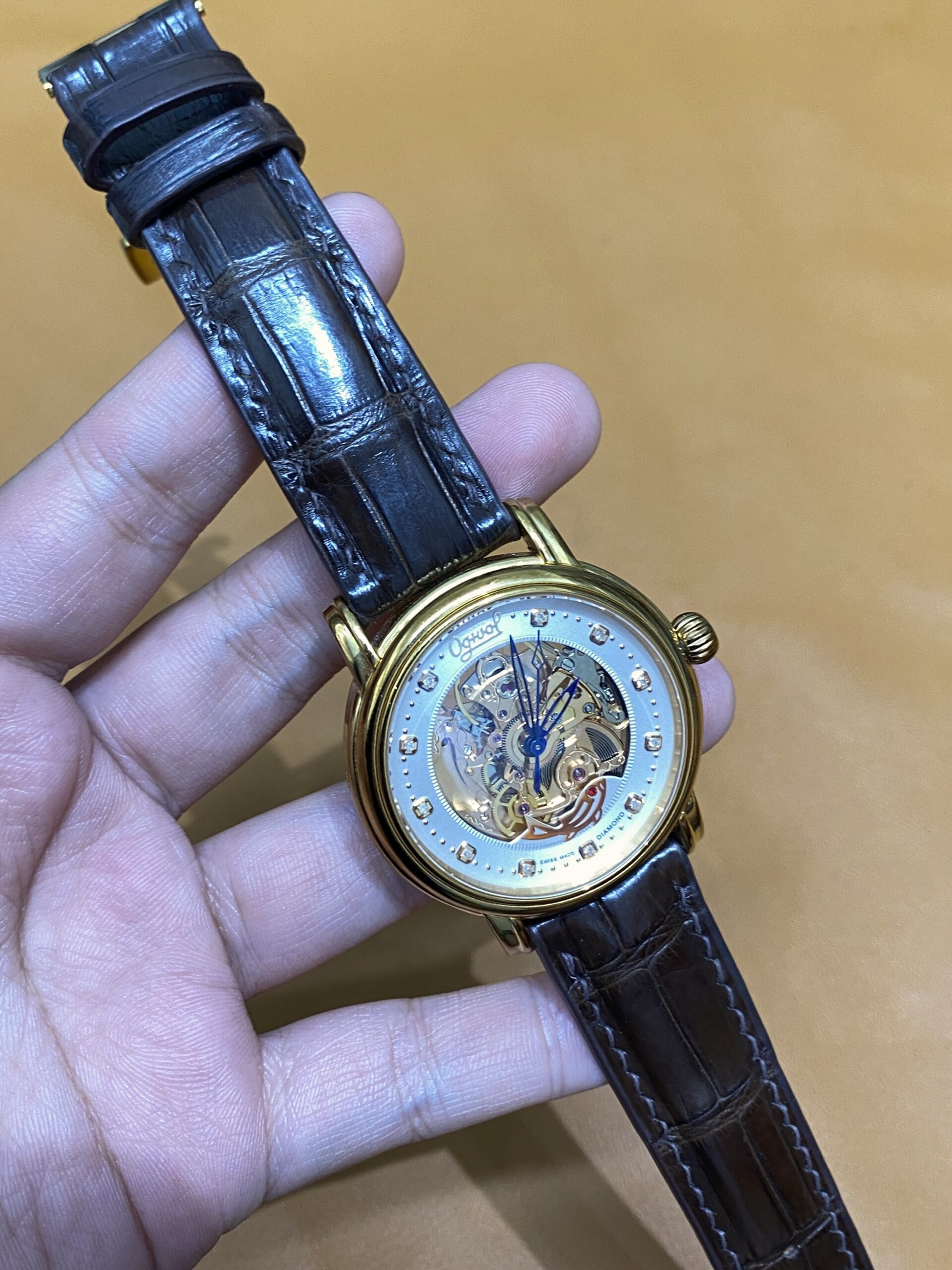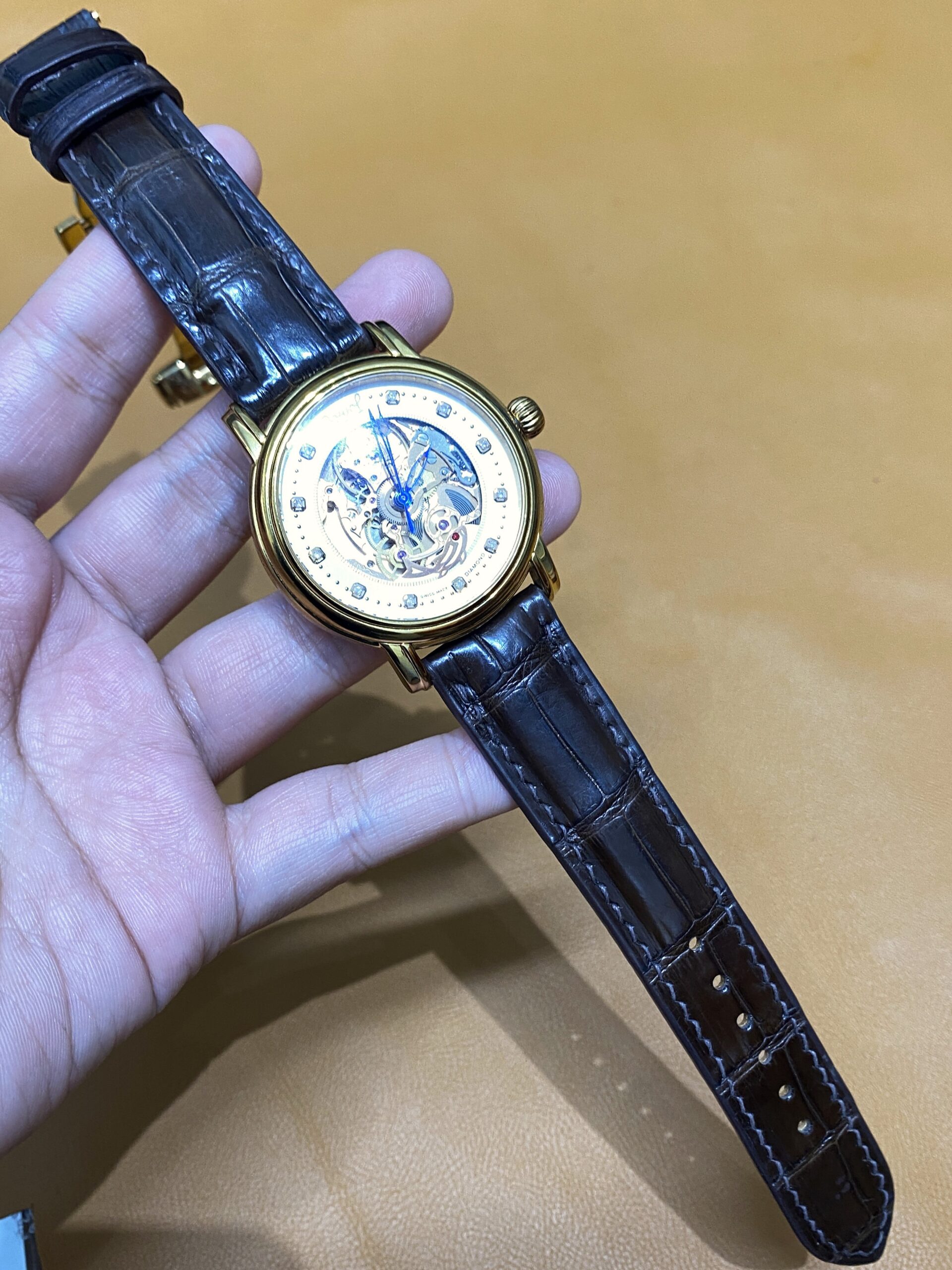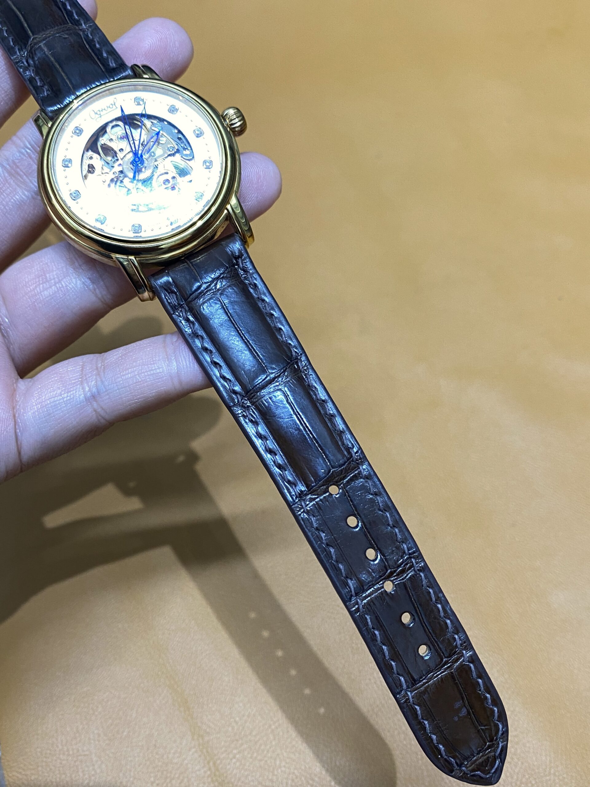 Dây cá sấu nâu cho đồng hồ Ogival Skeleton Diamond 358.61-2AMR-GL size 20-18