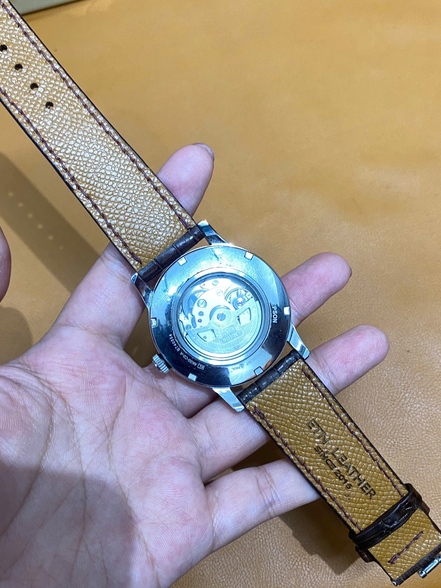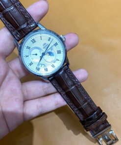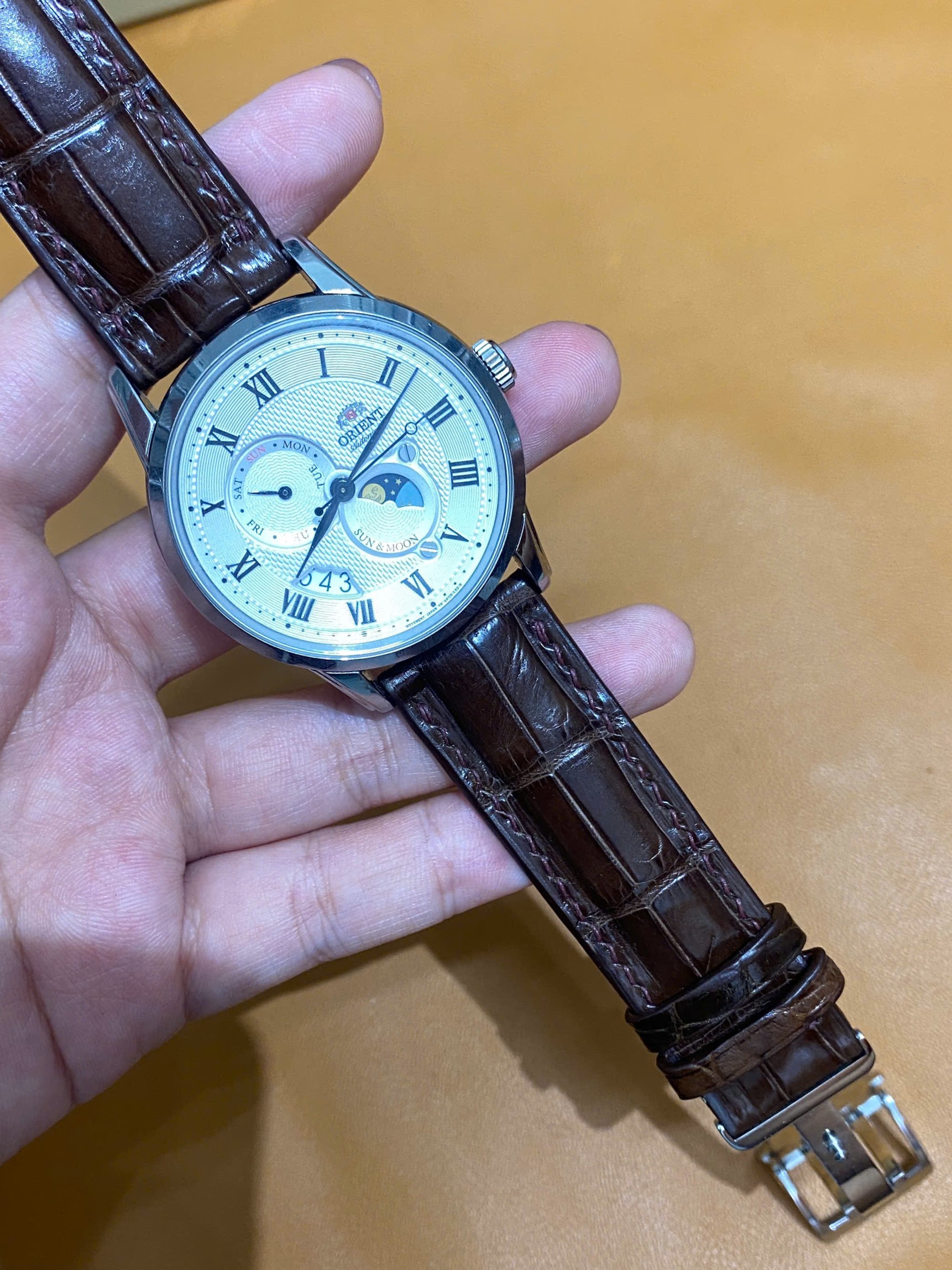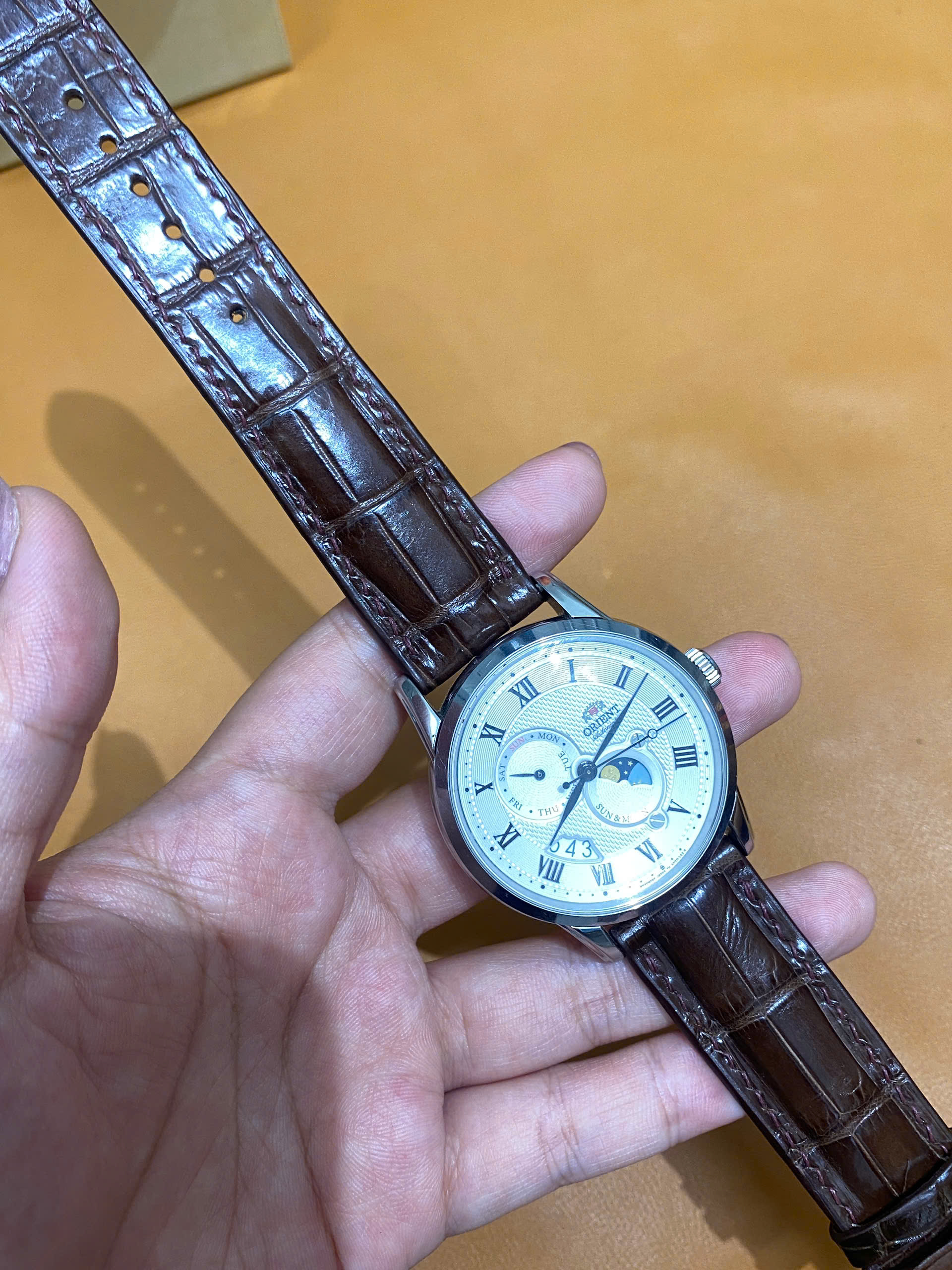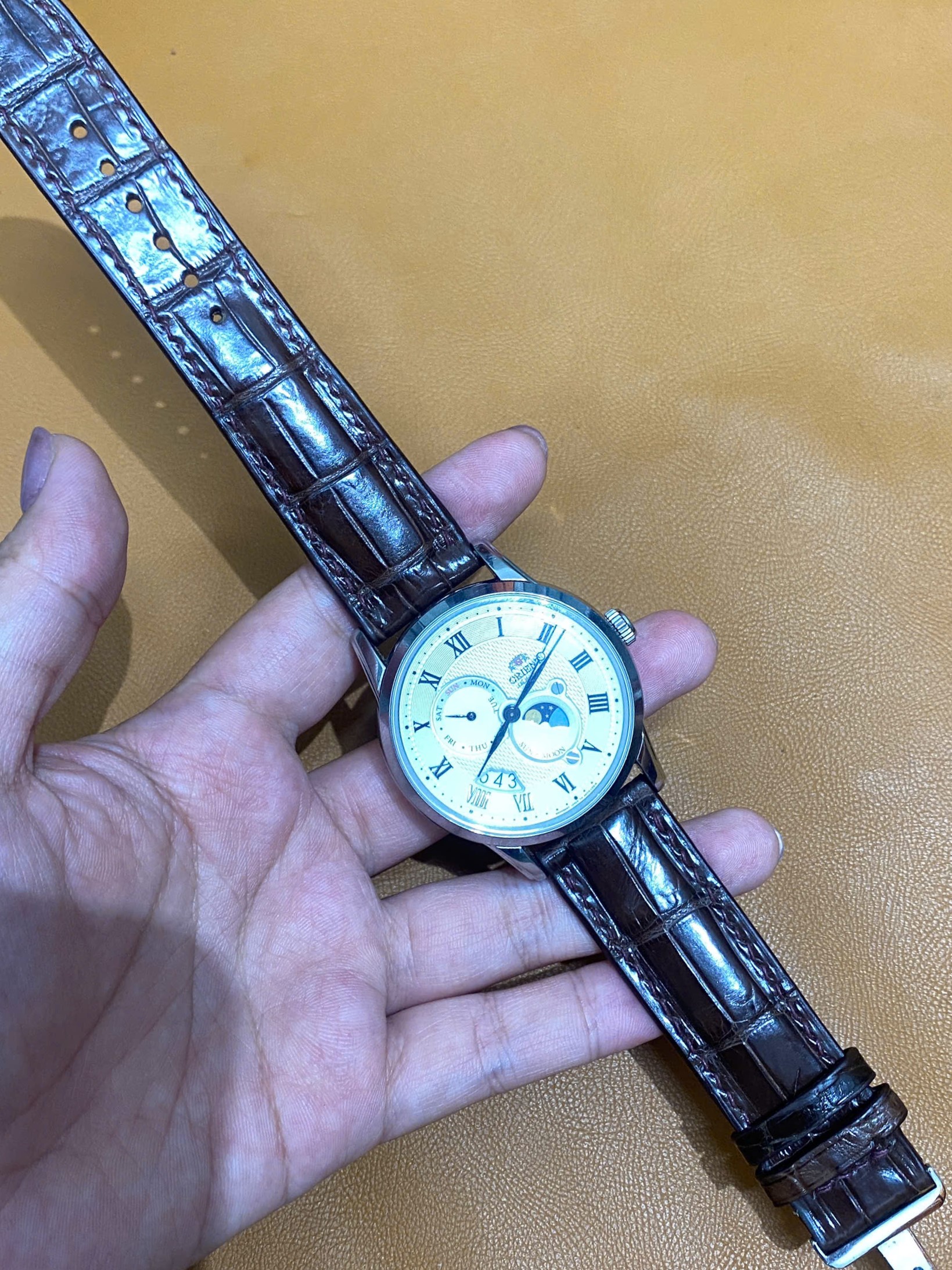 Dây cá sấu nâu cho Đồng Hồ Orient Classic Sun and Moon Gen3 size 22-20