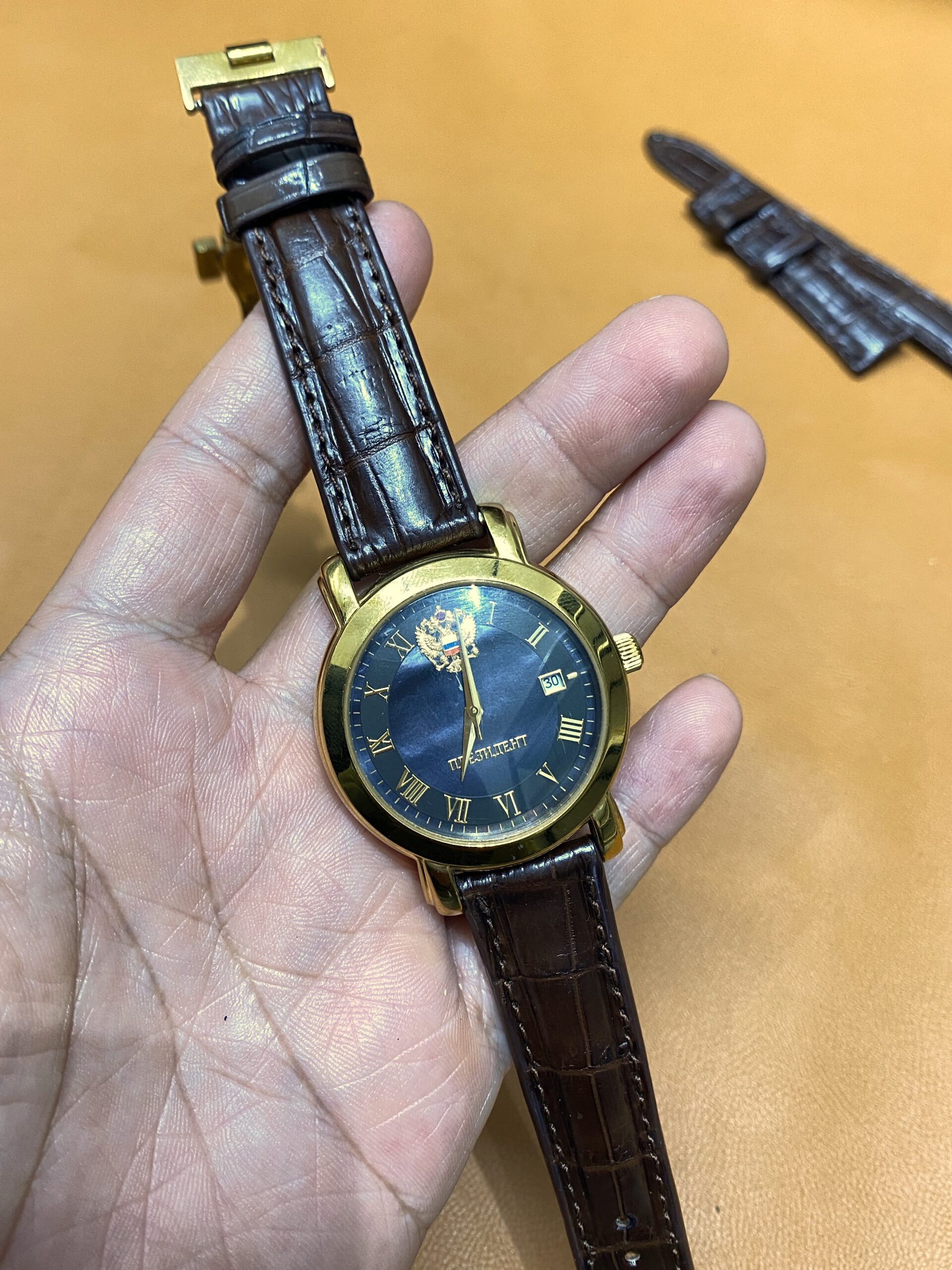 Dây cá sấu nâu cho Đồng hồ Poljot President Pin 4076681 size 20-18