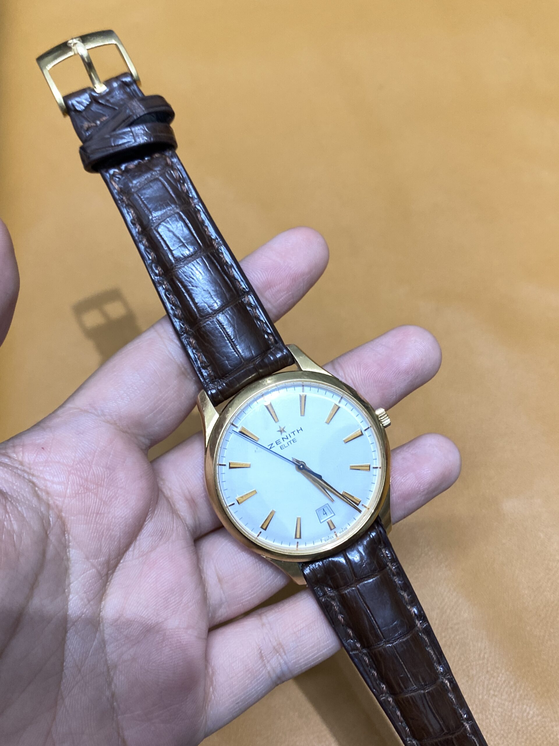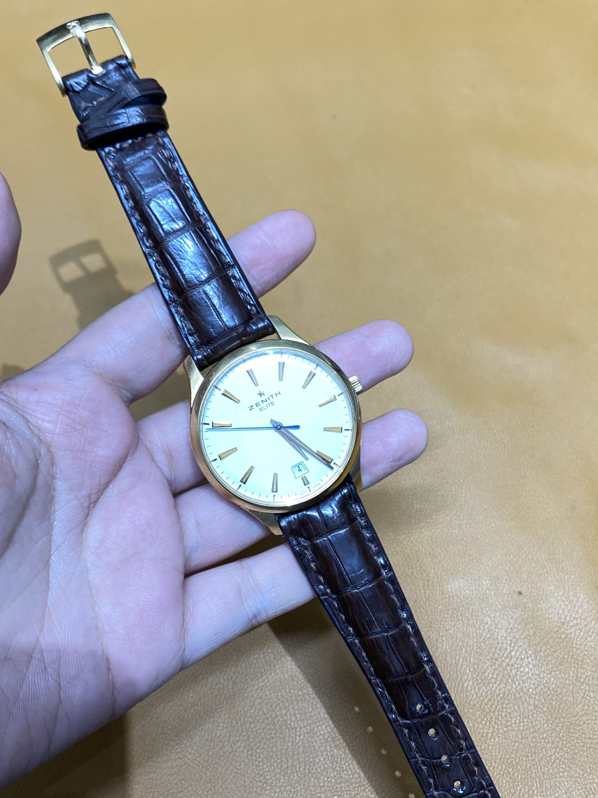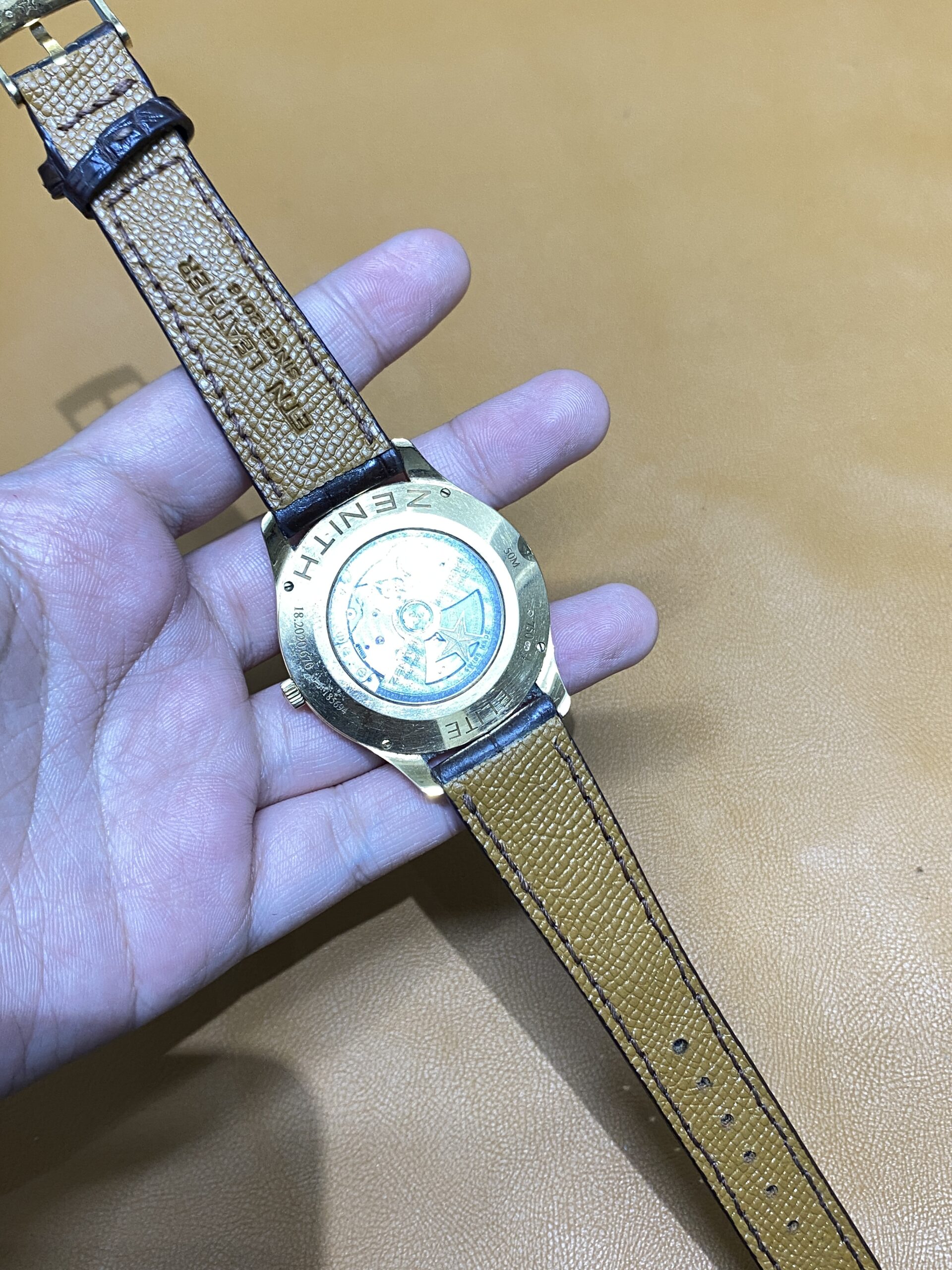 Dây cá sấu nâu cho đồng hồ Zenith Captain Elite White Dial 18.2020.670/02.C498 size 20-18