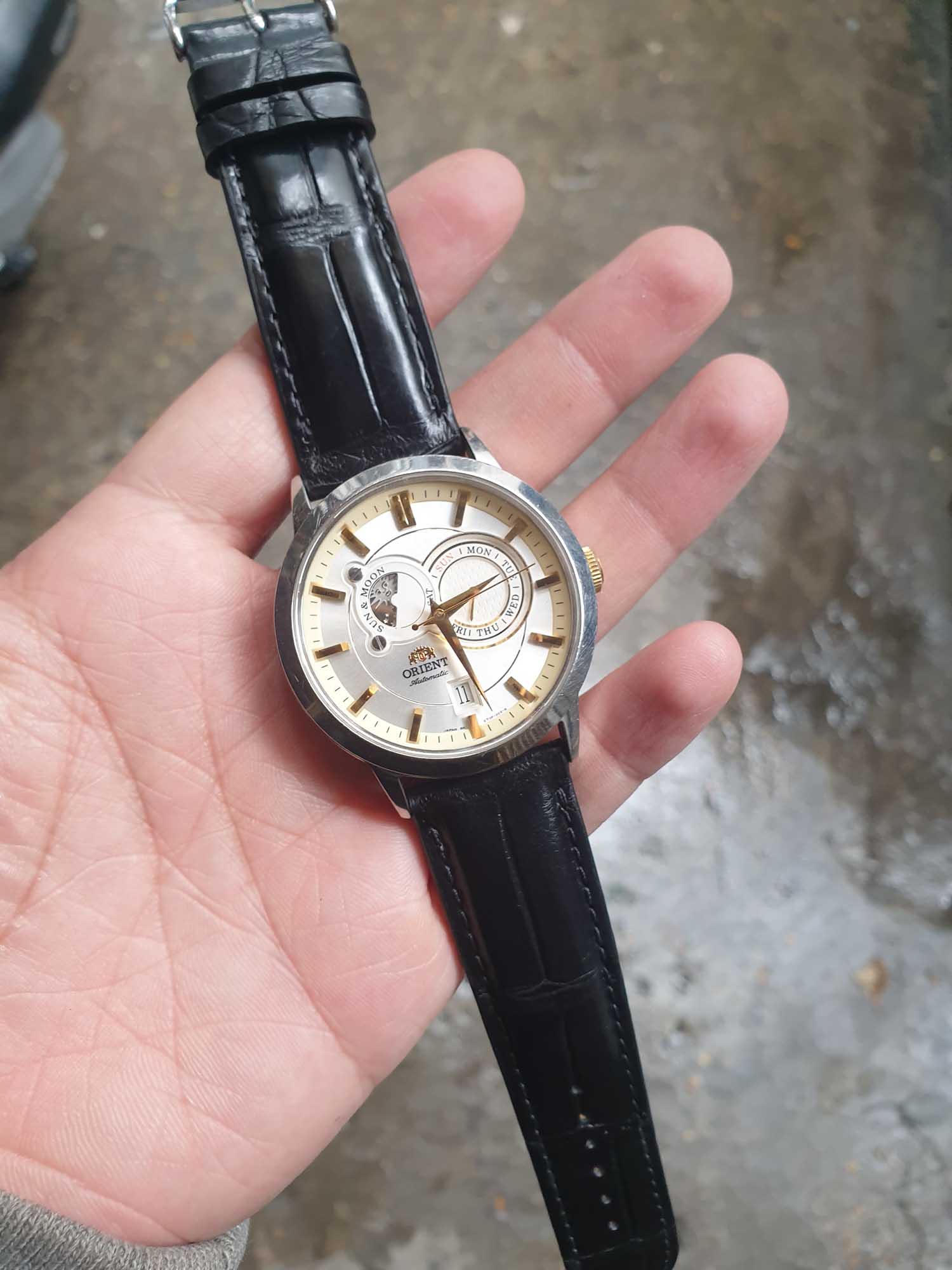 Dây đồng hồ cho Orient Sun And Moon Gen 1 FET0P003W0 size dây 22 – 20 của anh khách.