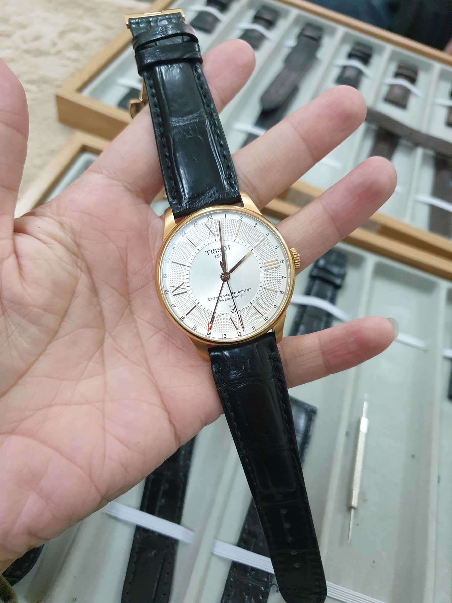 Dây đồng hồ da cá sấu cho Tissot Chemin Des Tourelles GMT T099.429.36.038.00 size 21 – 18 của anh khách.