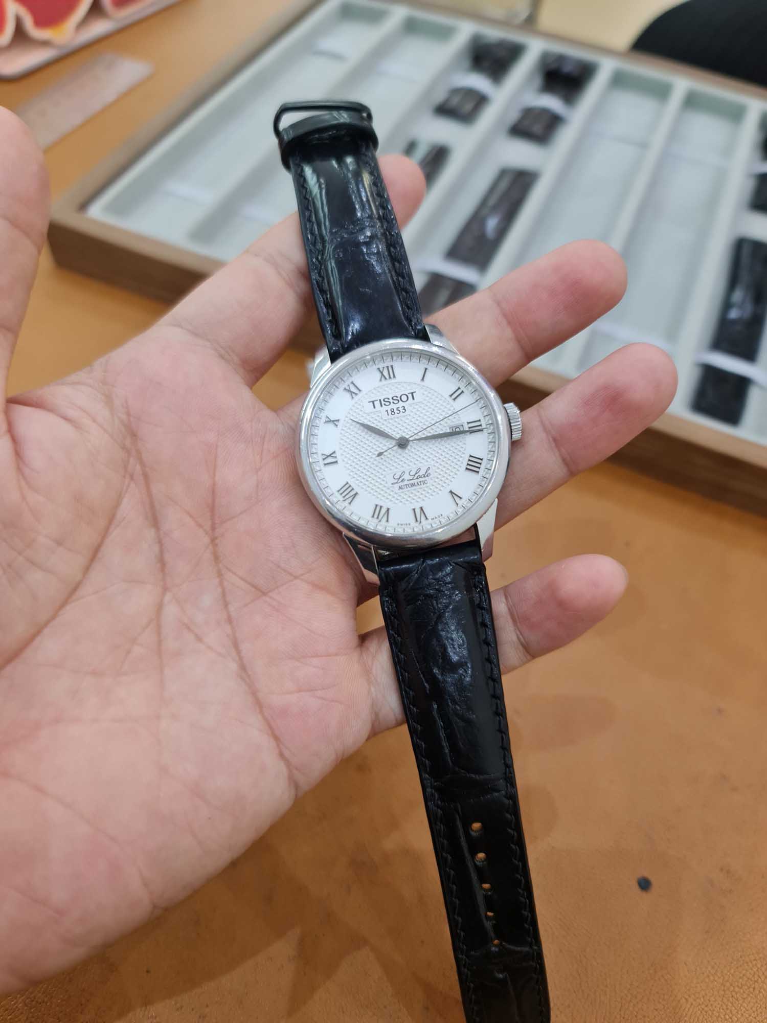 Dây da đồng hồ cho Tissot Le Locle Powermatic T006.407.16.033.00 size 19 – 18 của anh khách.