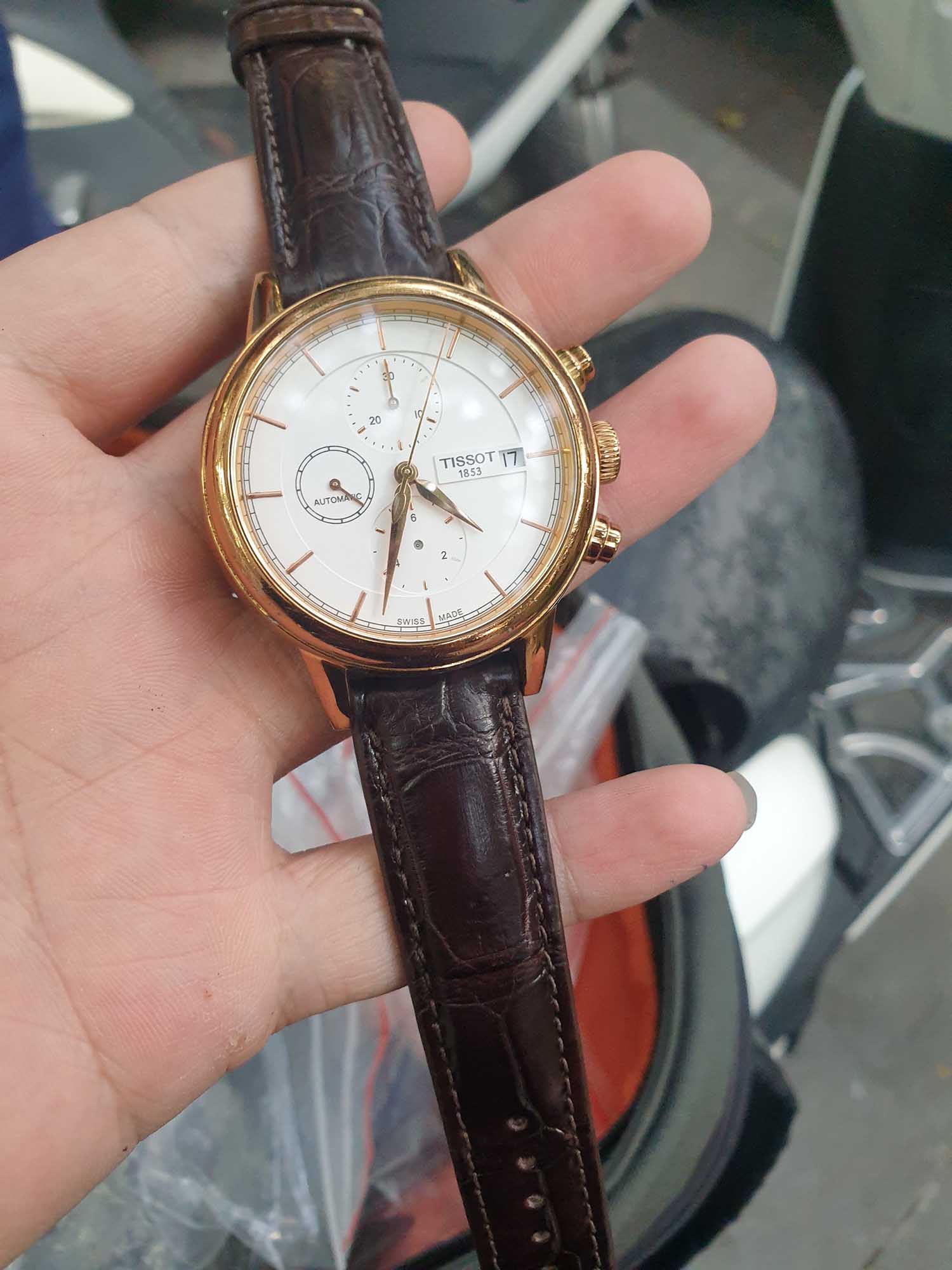 Dây đồng hồ da cá sấu màu nâu cho Tissot Carson T085.427.36.011.00 size 20 – 18 của anh khách.