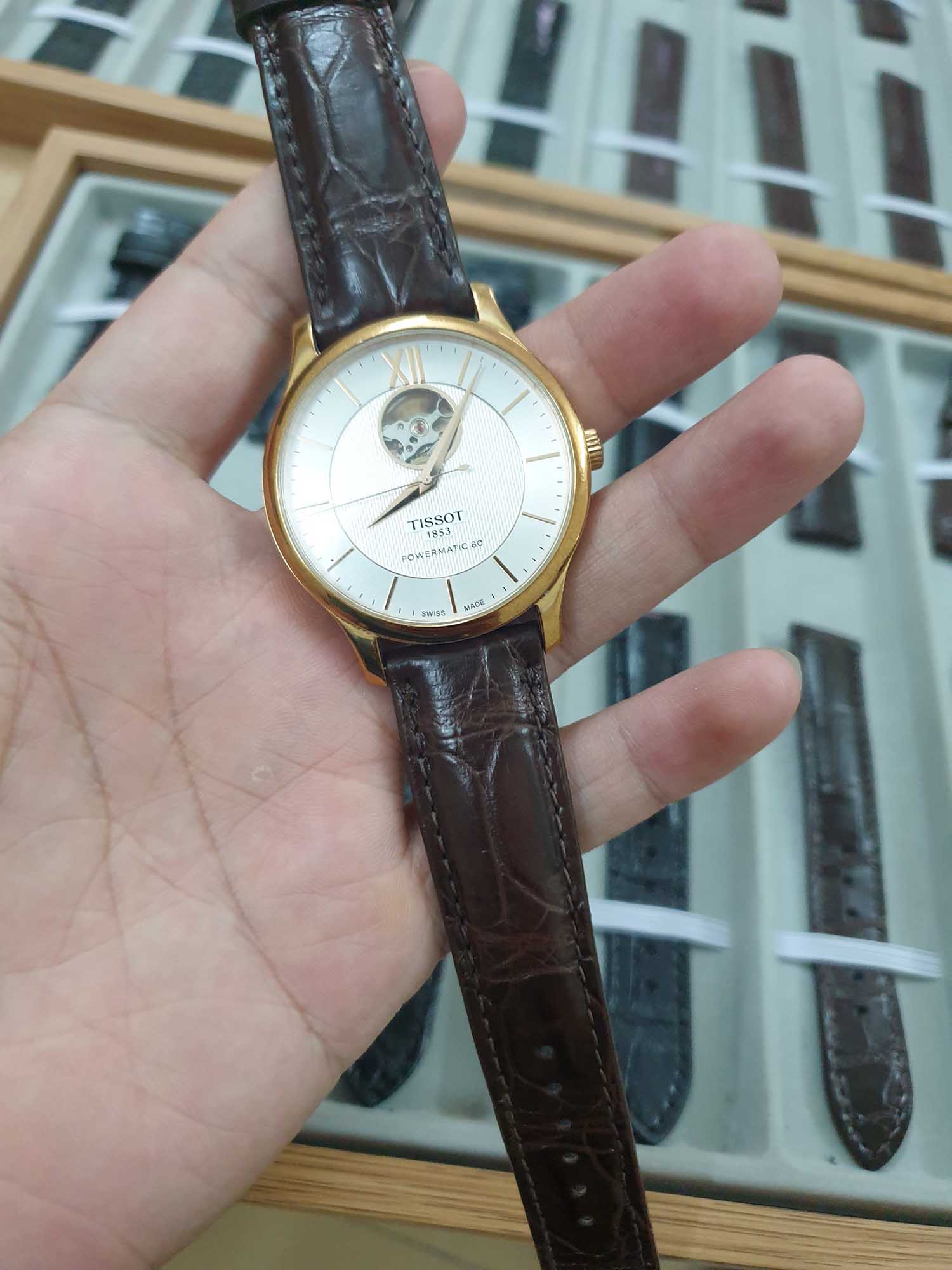Dây da nâu đất khâu máy đồng hồ Tissot Powermatic T063.907.36.038.00