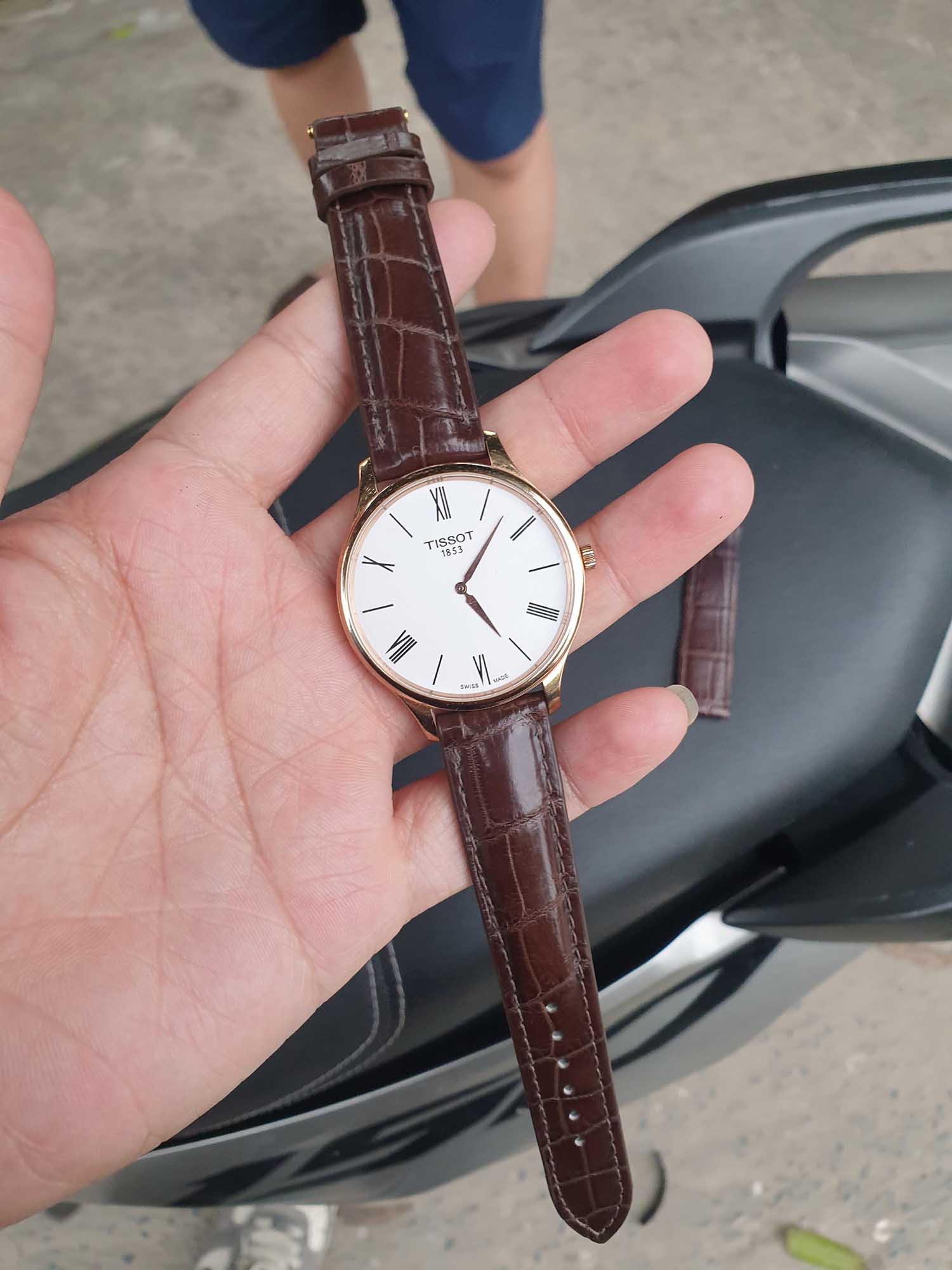 Dây đồng hồ da cá sấu màu nâu cho Tissot Tradition T063.409.36.018.00 size 20 – 18 của anh khách.