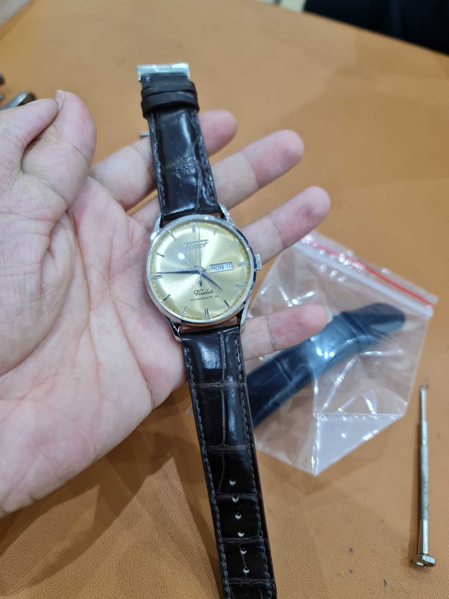 Dây da cá sấu cho Tissot Visodate Powermatic 80 size 20 – 18 của anh khách.