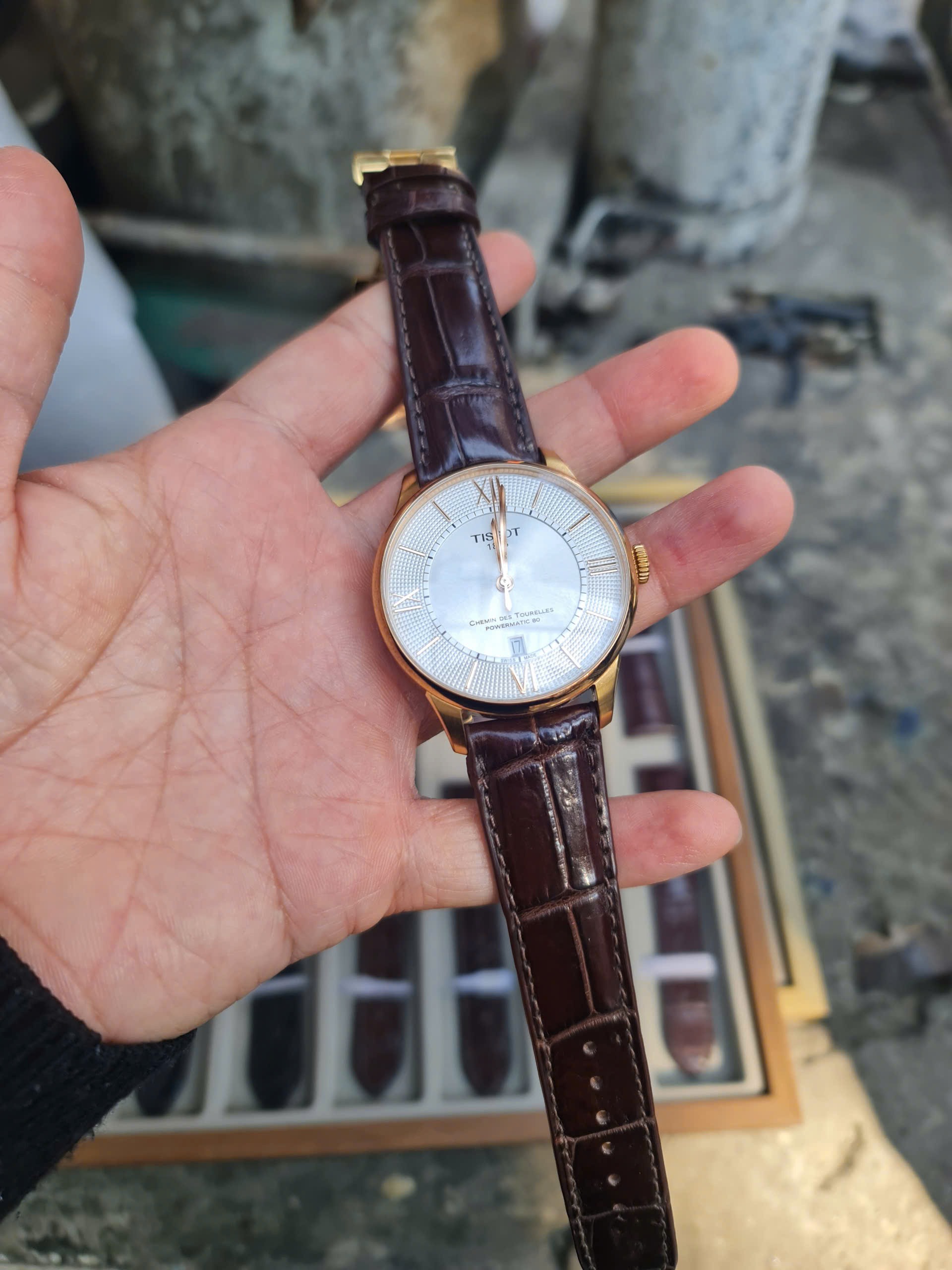 Dây đồng hồ cho Tissot Chemin Des Tourelles Powermatic 80 T099.407.36.038.00 size 21 – 18 của anh khách.