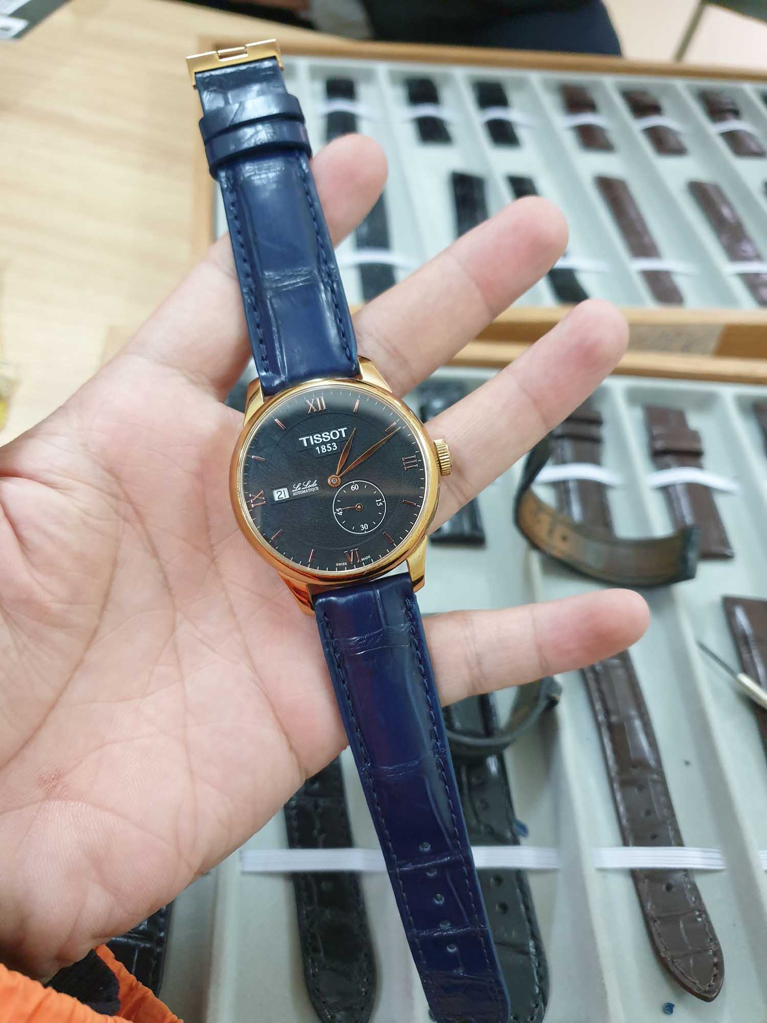 Dây da xanh Navy khâu máy đồng hồ Tissot Le Locle T006.428.36.058.00
