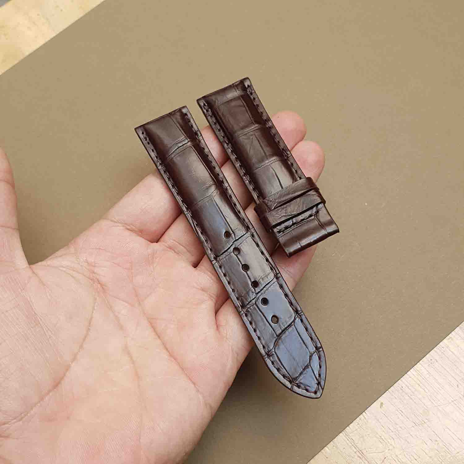Dây đồng hồ màu nâu đất da bụng cá sấu size 18 16, 20 18, 20 16, 22 20, 22 18,…