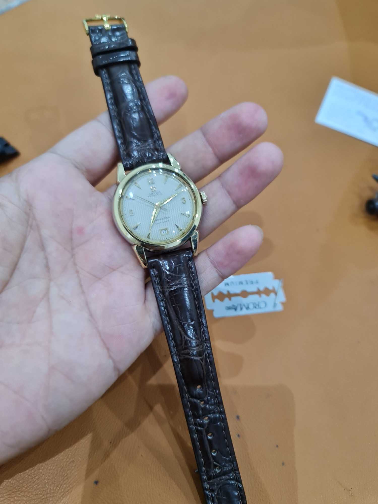 Dây đồng hồ da cá sấu màu nâu đất cho đồng hồ Omega size 18 – 16 của anh khách.