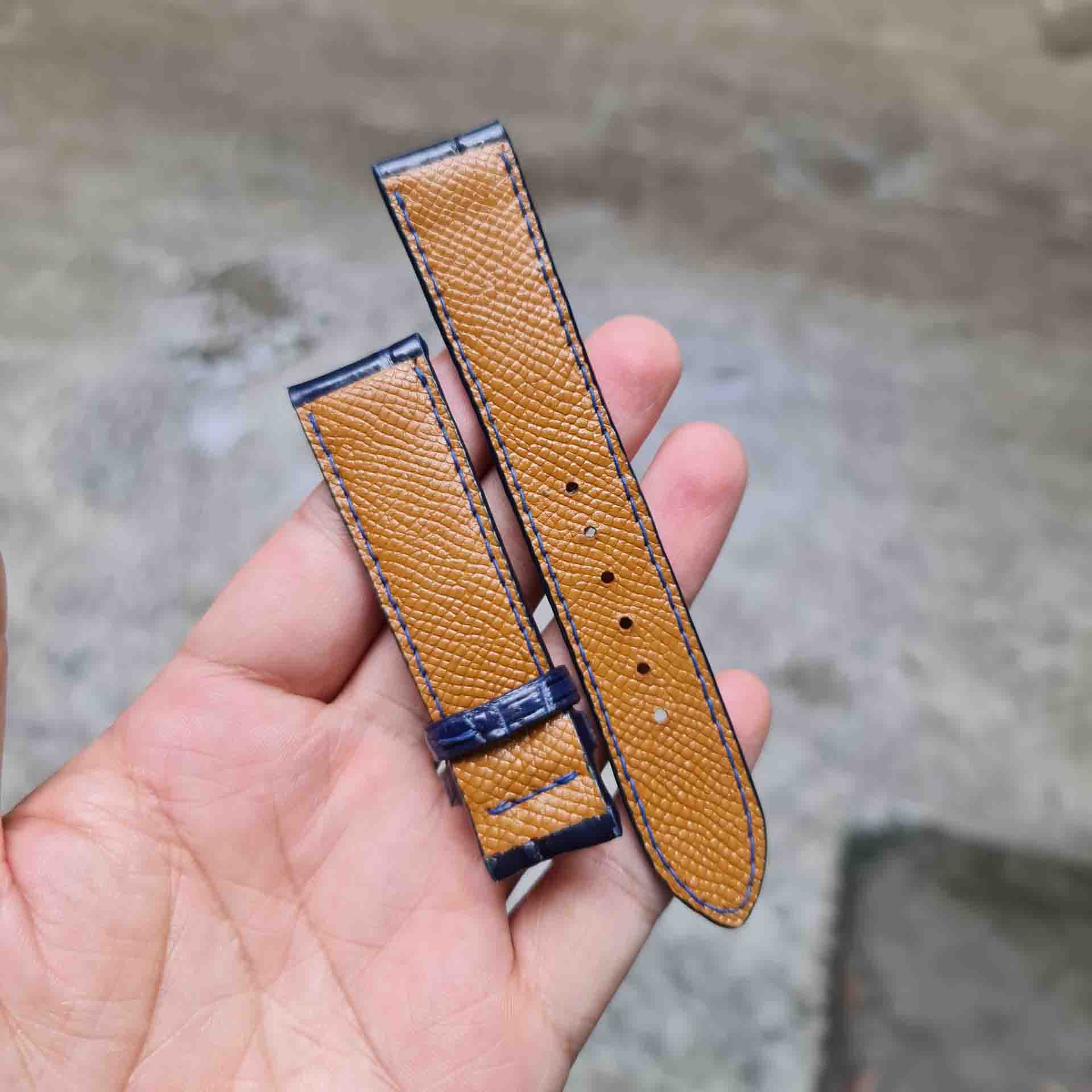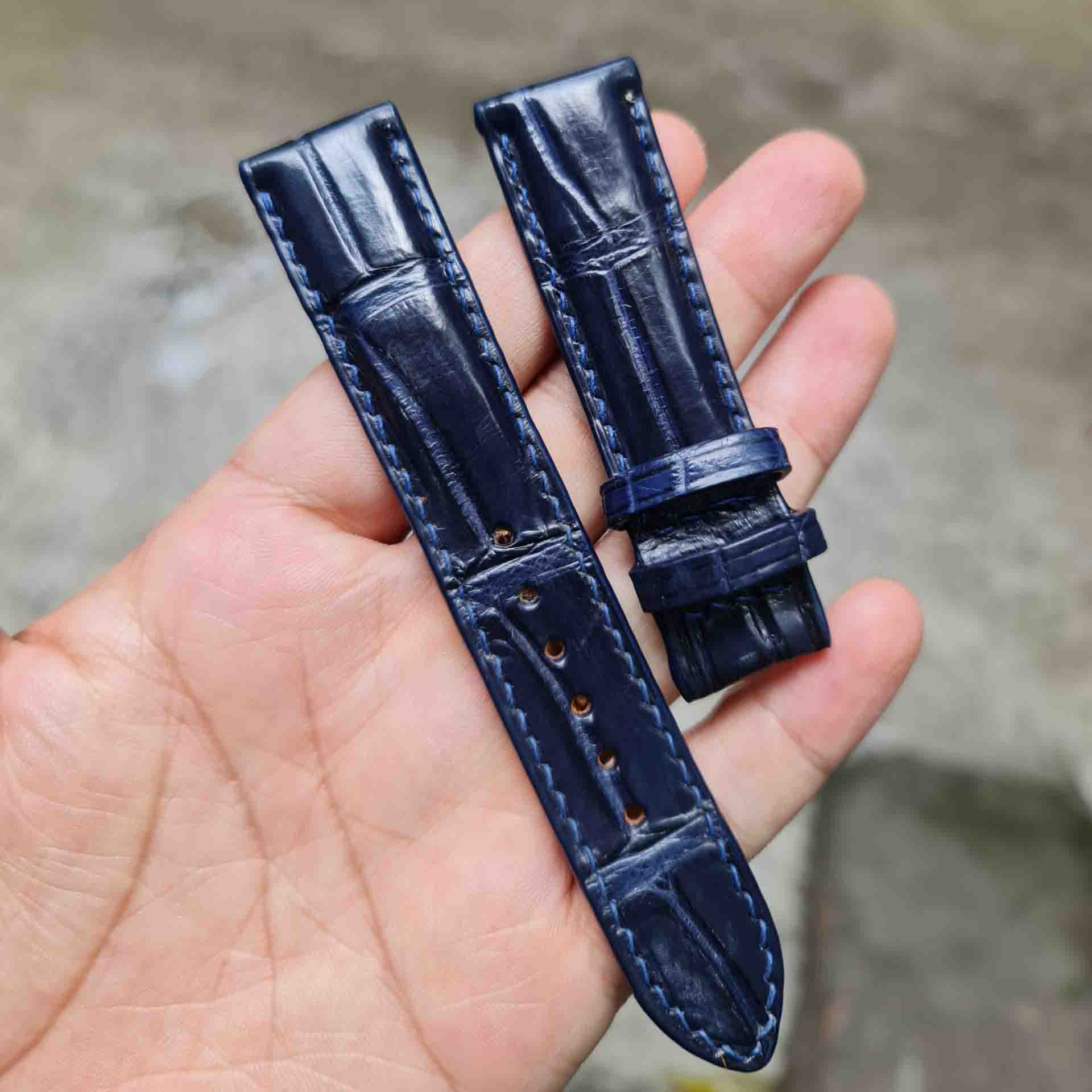 Dây đồng hồ da cá sấu màu xanh navy khâu tay đốt tre lớn
